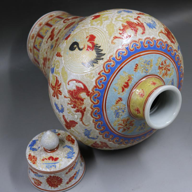 尺寸 高43.5厘米 口徑7.6厘米 肚徑26厘米 底徑14厘米