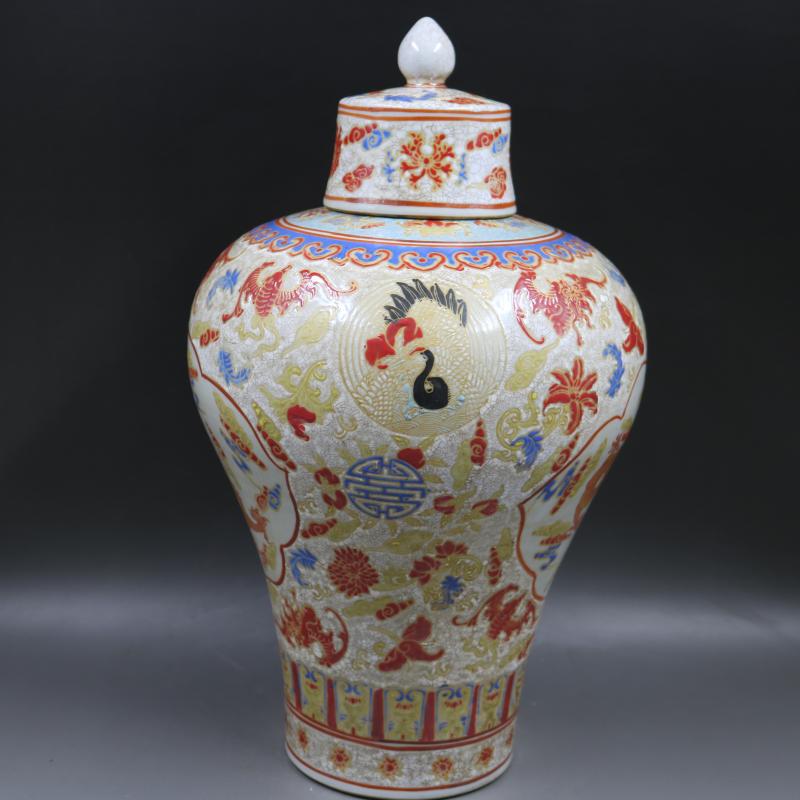 清乾隆夜光瓷器福壽龍紋梅瓶仿古老貨瓷器家居裝飾擺件古董古玩1入