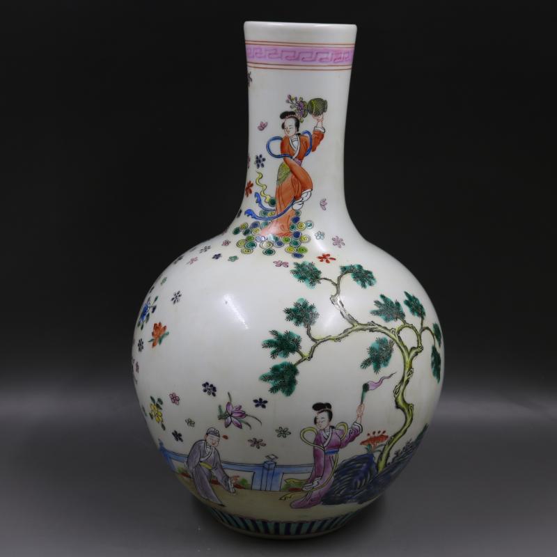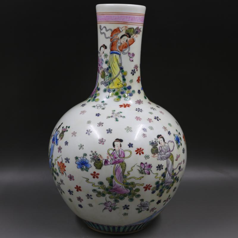 清康熙粉彩人物天女散花天球瓶家居仿古瓷器擺件古董古玩老貨收藏1入