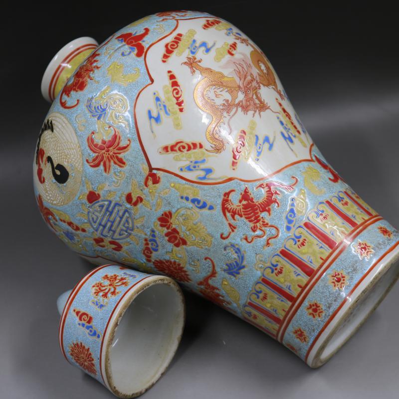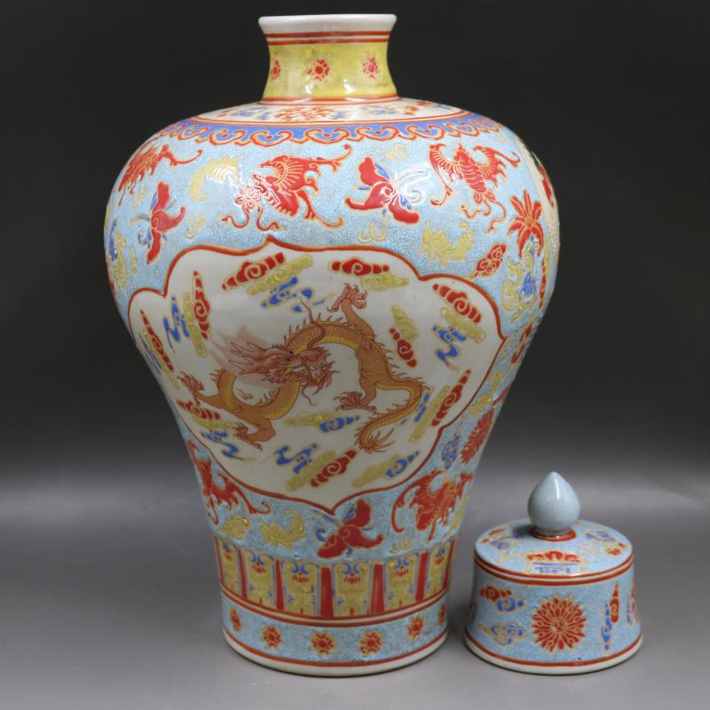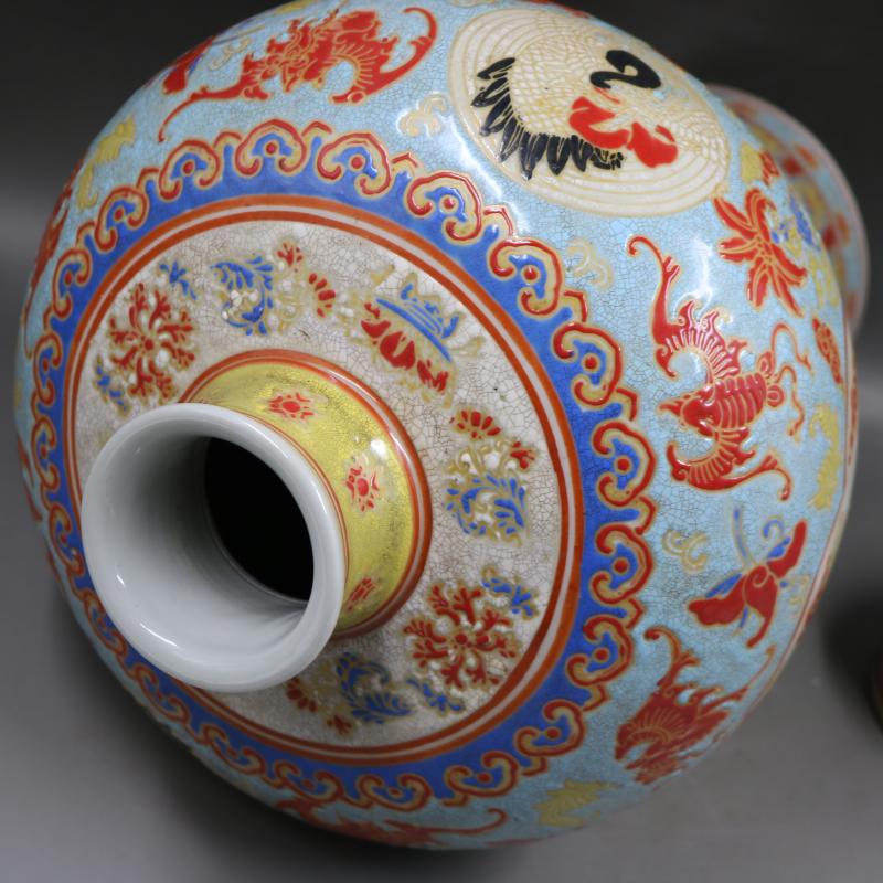 清乾隆夜光瓷器福壽龍紋梅瓶仿古老貨瓷器家居裝飾擺件古董古玩1入