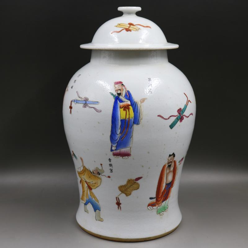 清咸豐粉彩八仙人物將軍罐手繪仿古老貨瓷器家居擺件古董古玩收藏1入