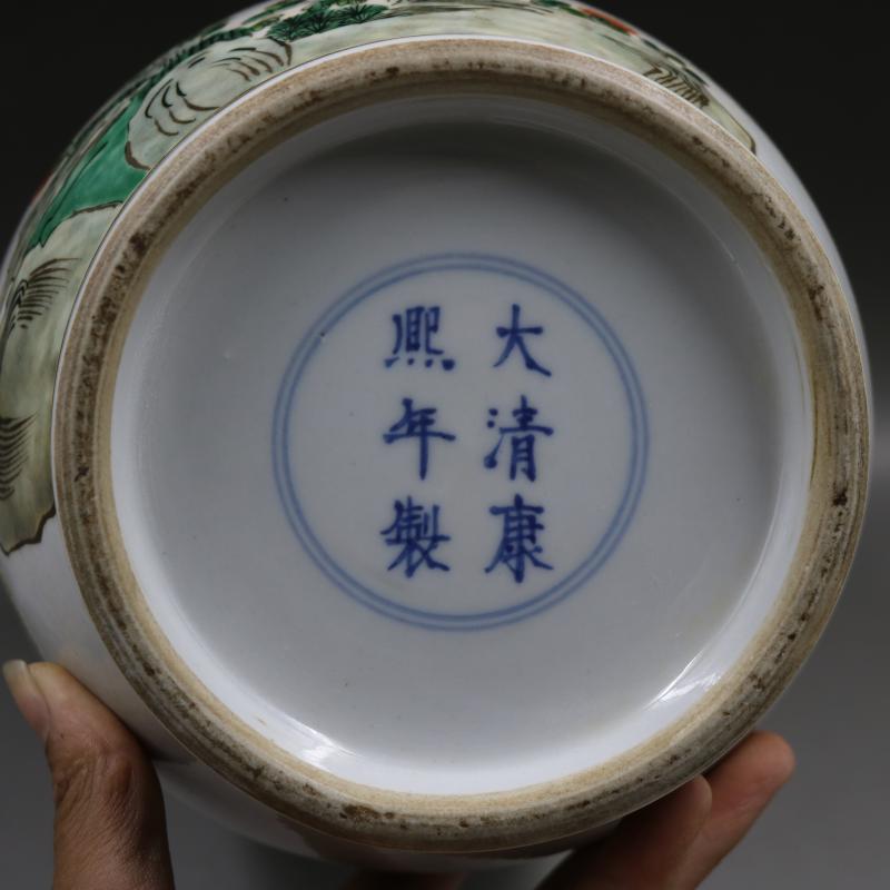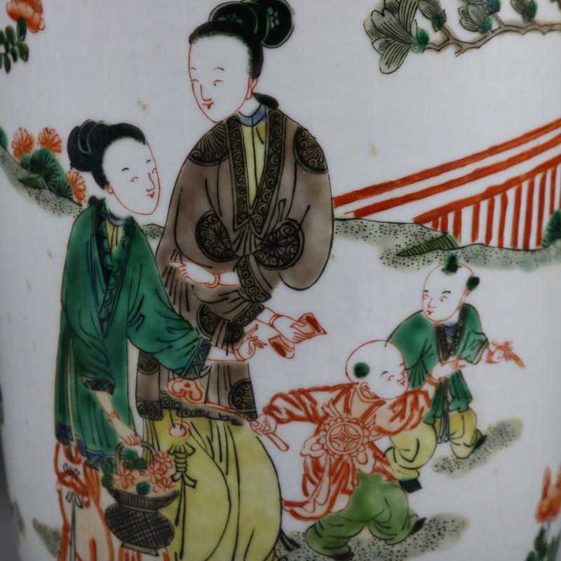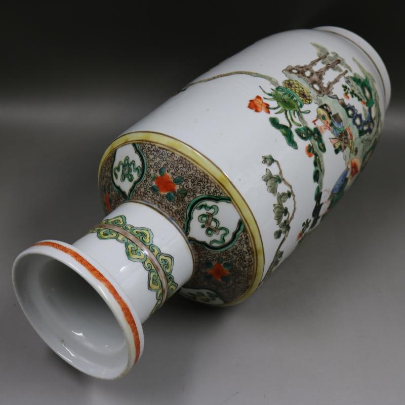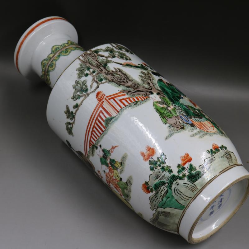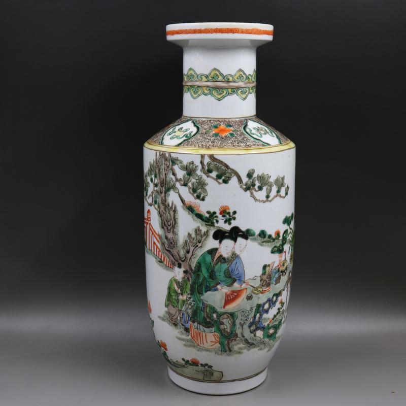 大清康熙古彩人物棒槌瓶手工仿古家居裝飾品瓷器擺件古董古玩收藏1入