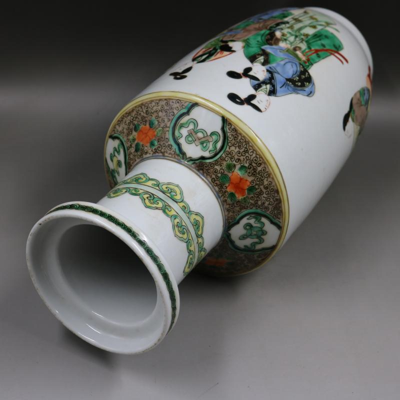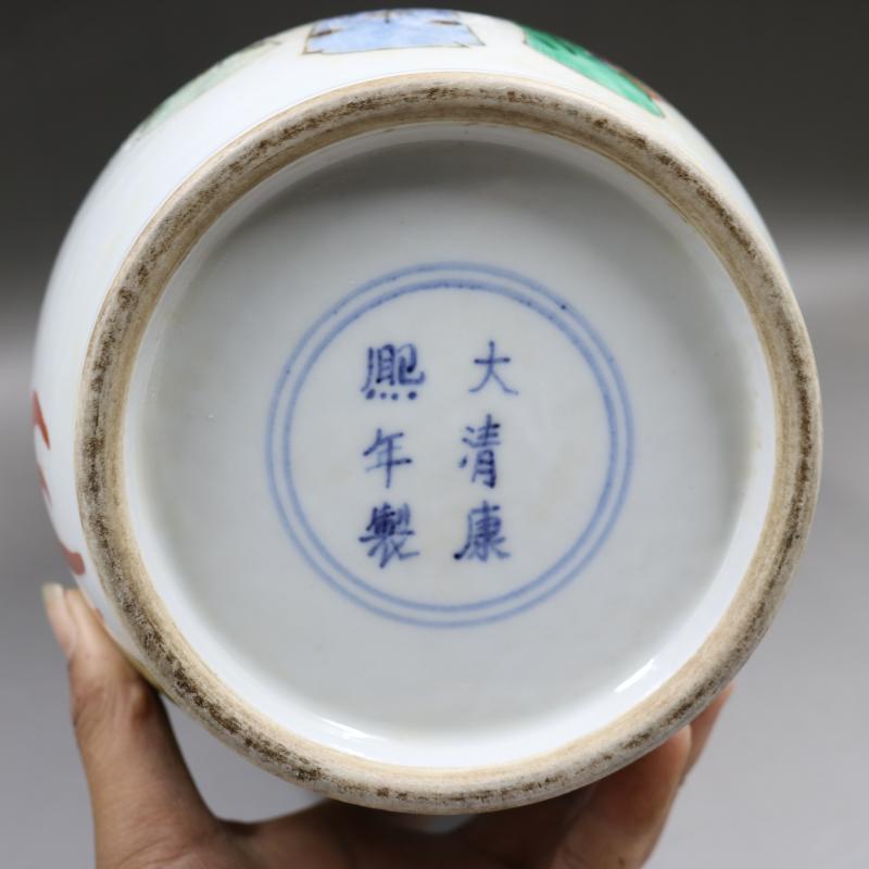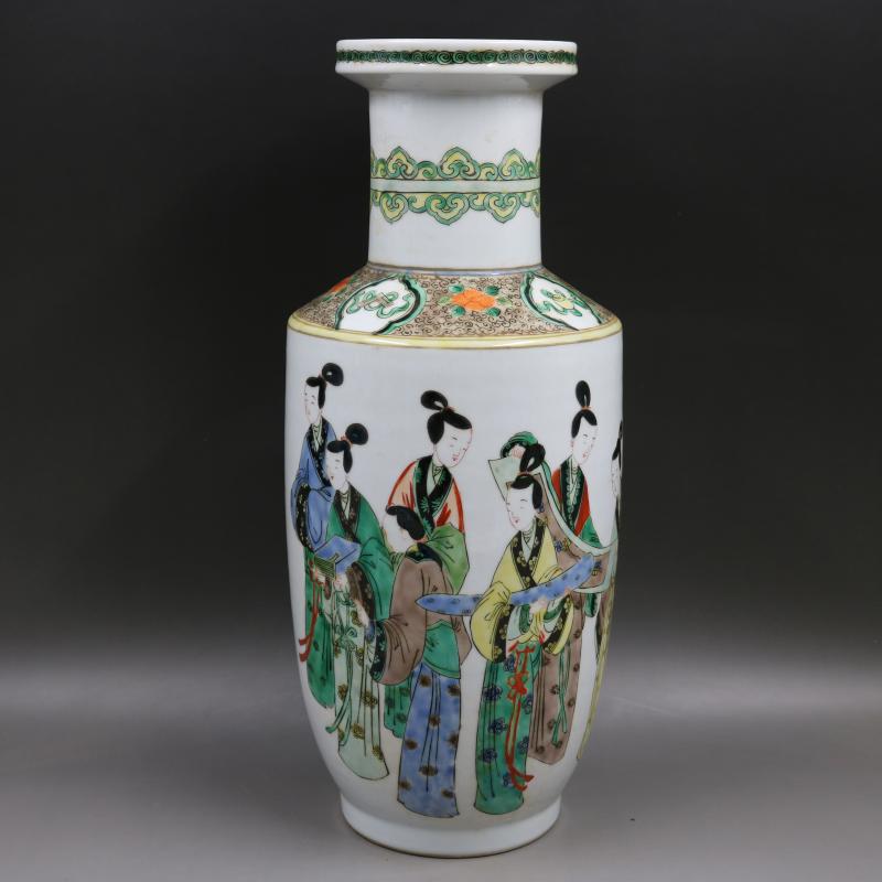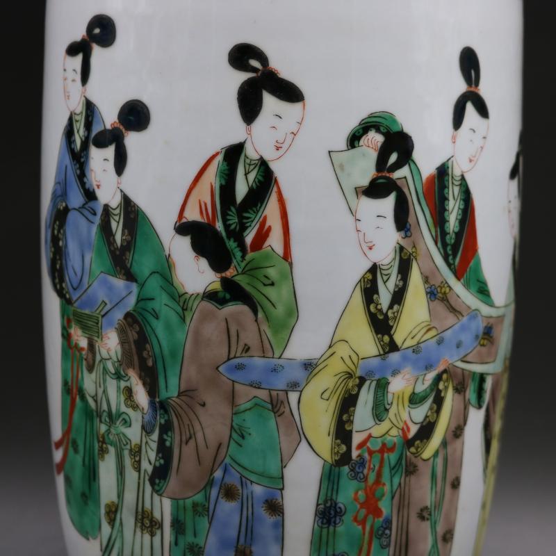 清康熙古彩人物棒槌瓶手工仿古家居裝飾品瓷器擺件古董古玩收藏1入