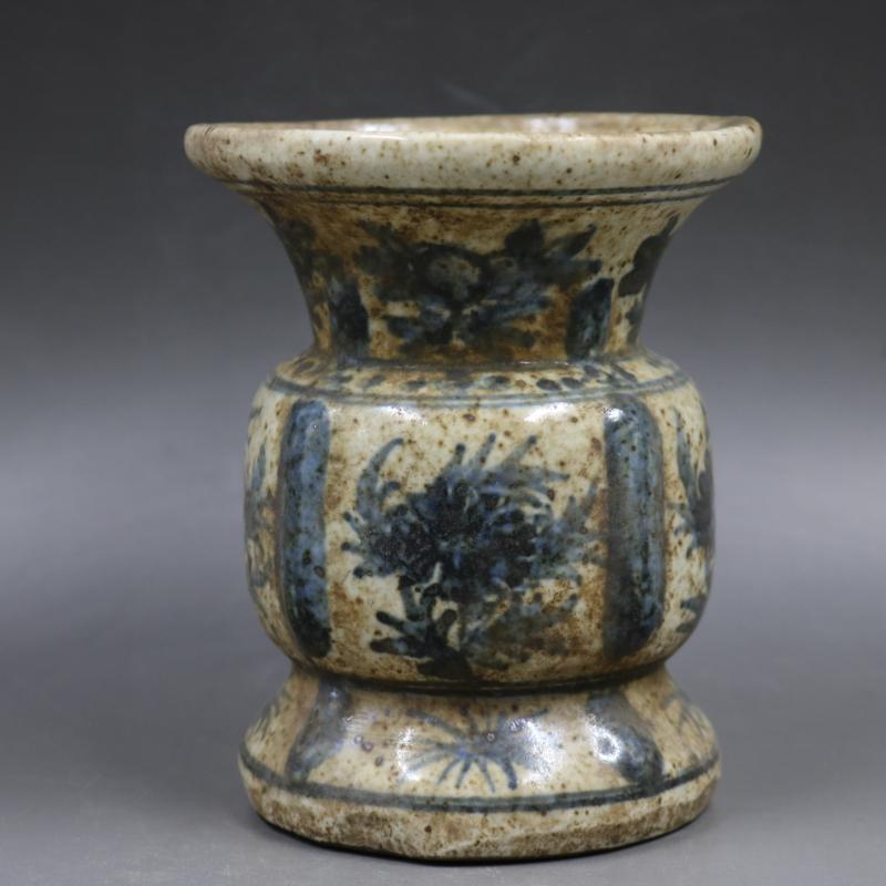元青花花草紋花觚瓶民間老貨收藏品家居包老瓷器擺件古董古玩收藏1入