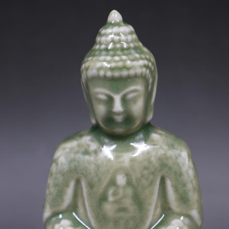 清康熙豆青釉雕刻如來佛像仿古老貨包老瓷器家居擺件古董古玩收藏1入