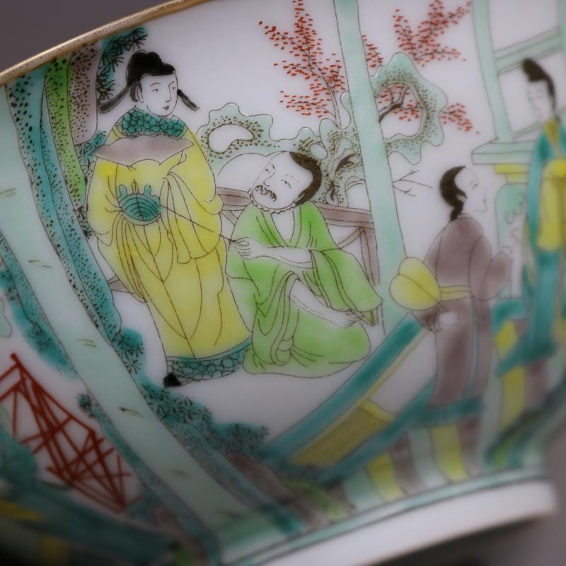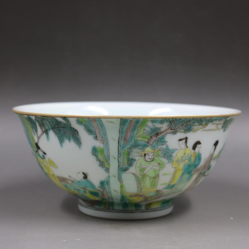 清雍正粉彩描本金人物碗手工仿古老貨瓷器家居博古架擺件古董古玩1入