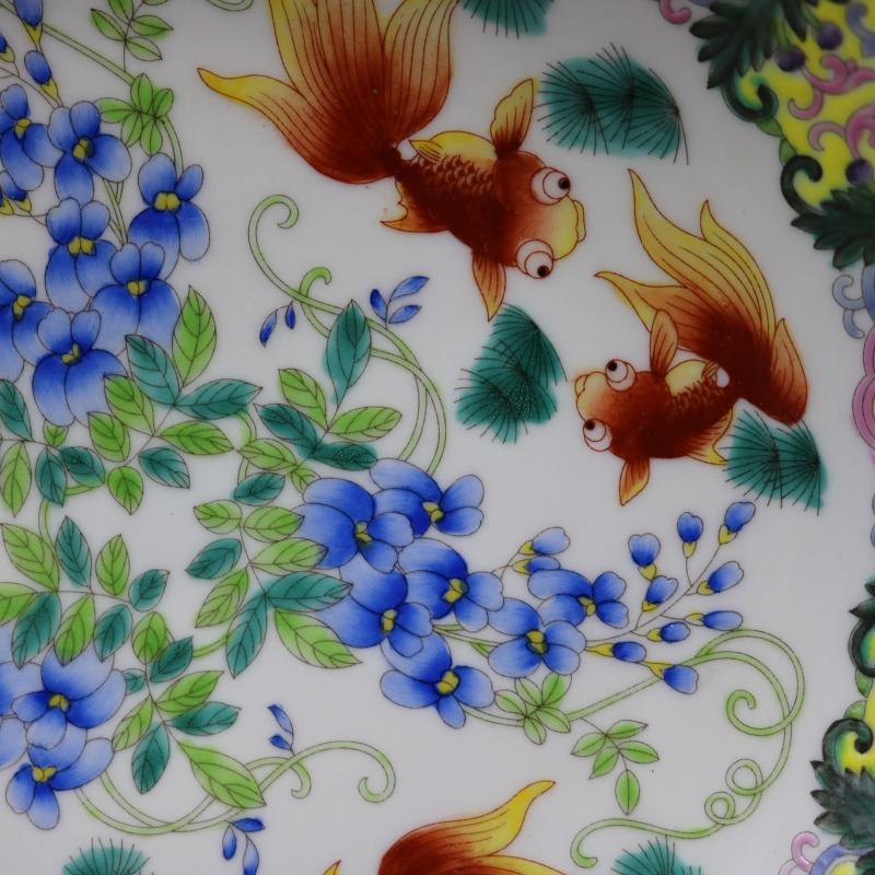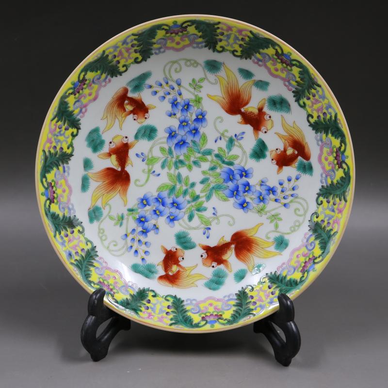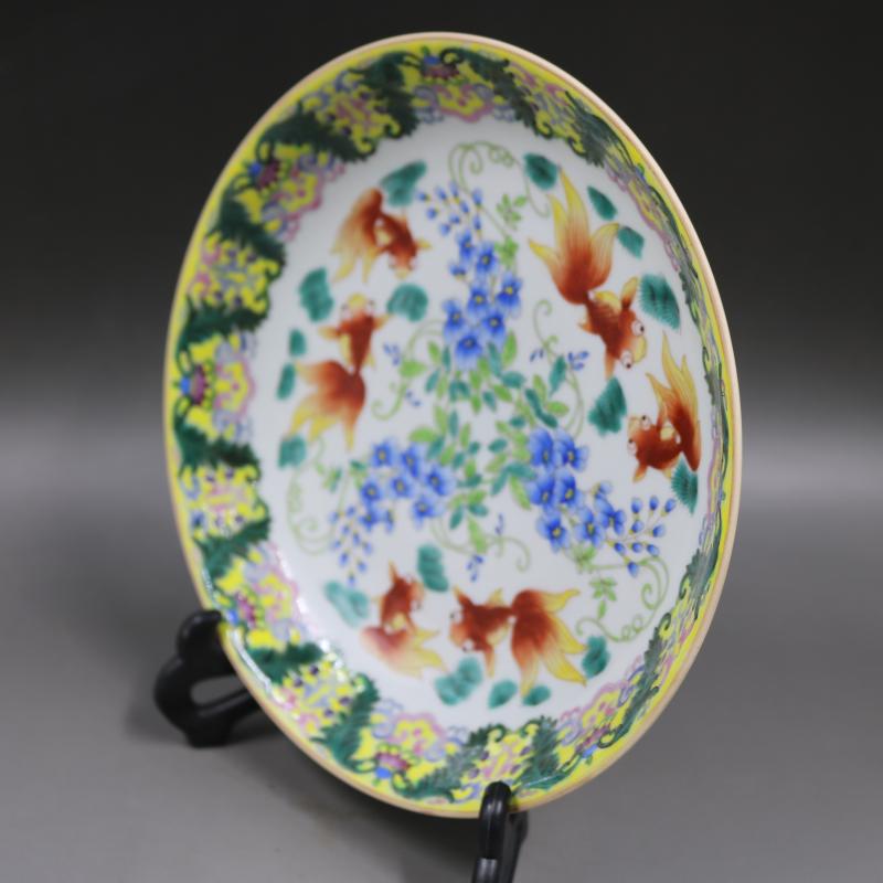清雍正粉彩描本金金魚紋盤仿古老貨瓷器家居博古架擺件古董古玩1入