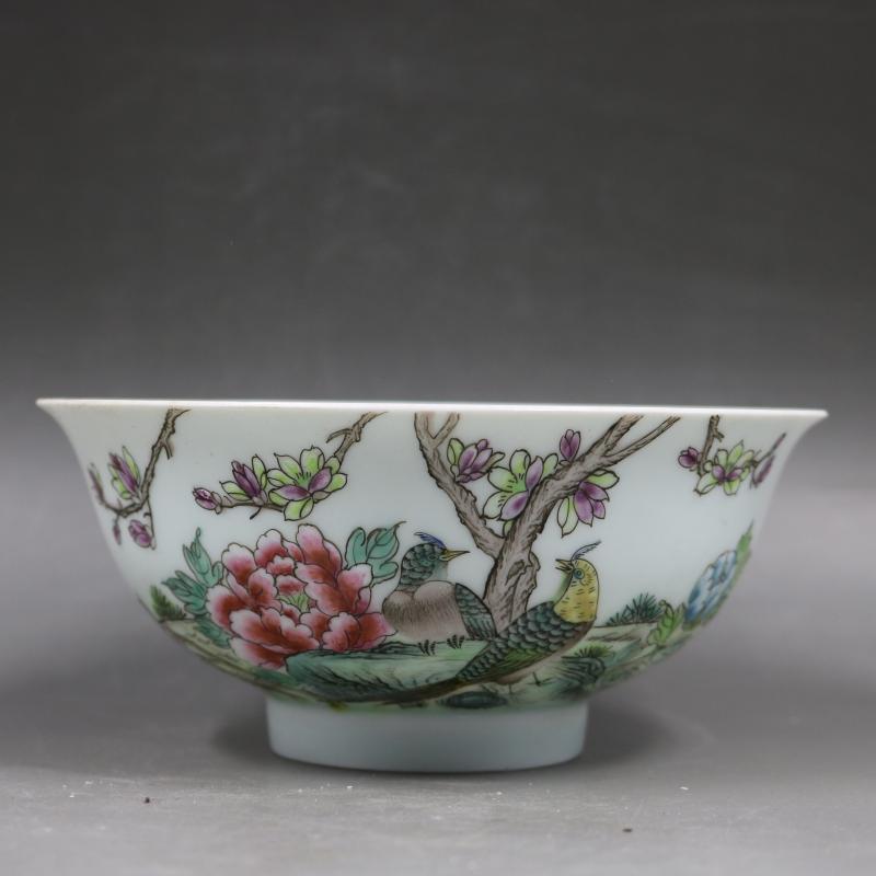 清乾隆粉彩牡丹花鳥碗手繪仿古家居酒店瓷器擺件古董古玩老貨收藏1入
