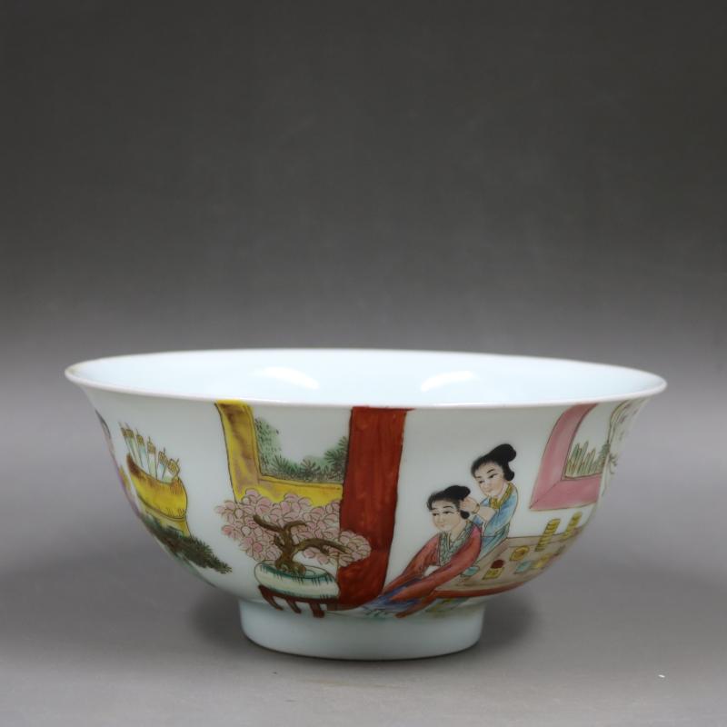 [2]清乾隆粉彩人物紋碗手繪仿古家居酒店瓷器擺件古董古玩老貨收藏1入