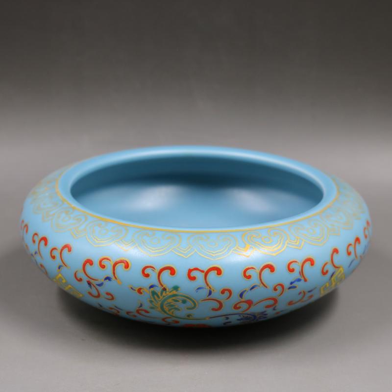 清乾隆天藍釉琺瑯彩水洗筆洗仿古復古文房擺件瓷器古董古玩收藏1入