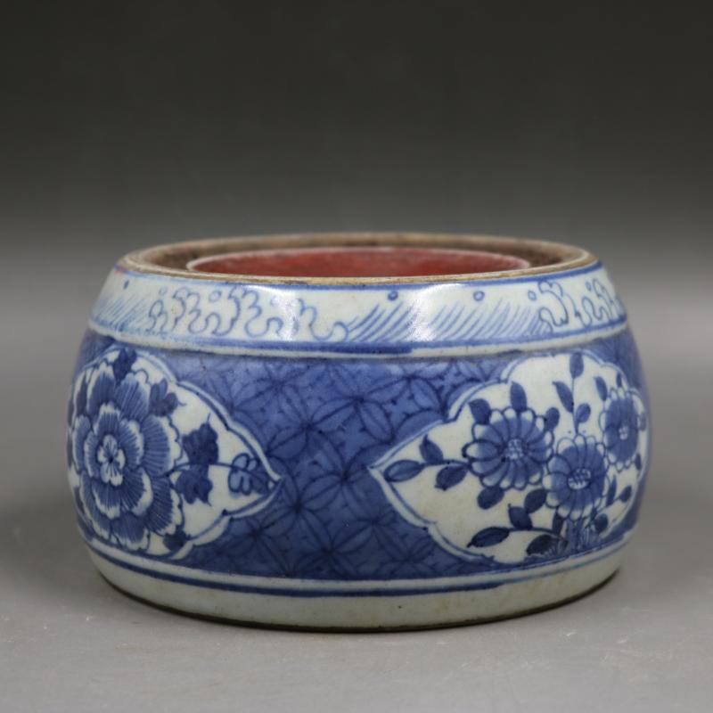 大清康熙青花花紋硯臺手繪仿古老貨瓷器家居文房擺件古董古玩收藏1入