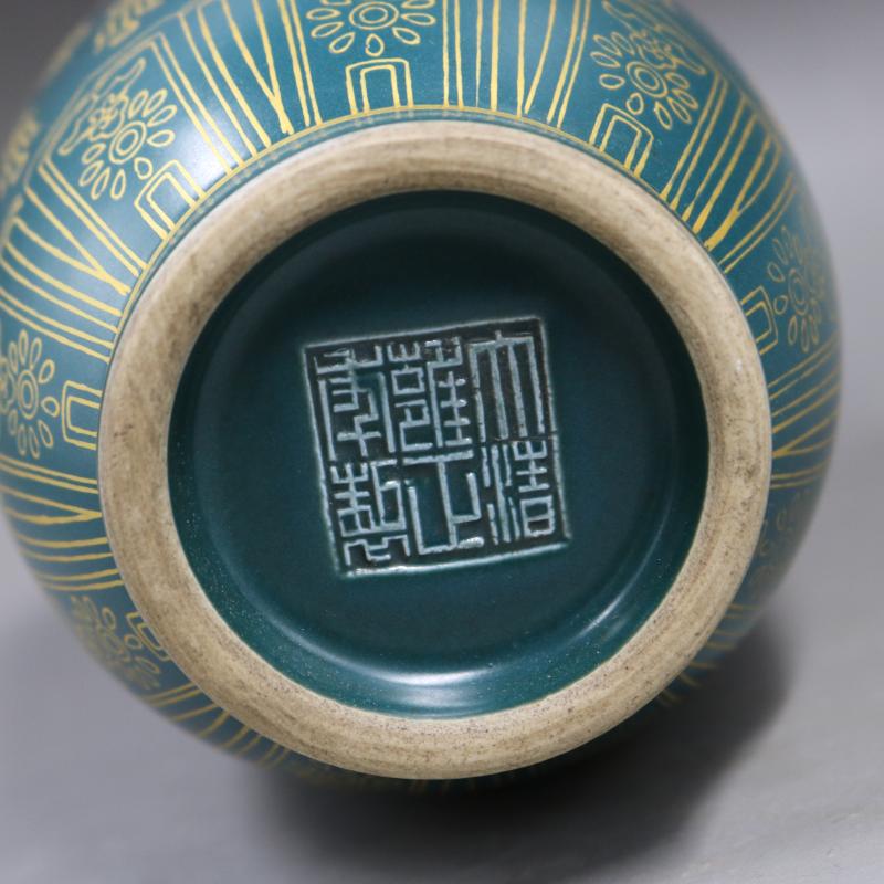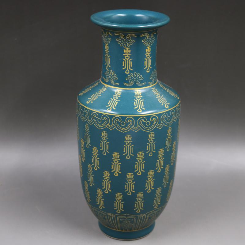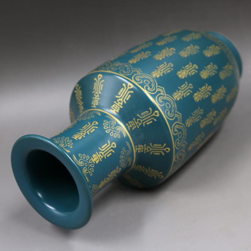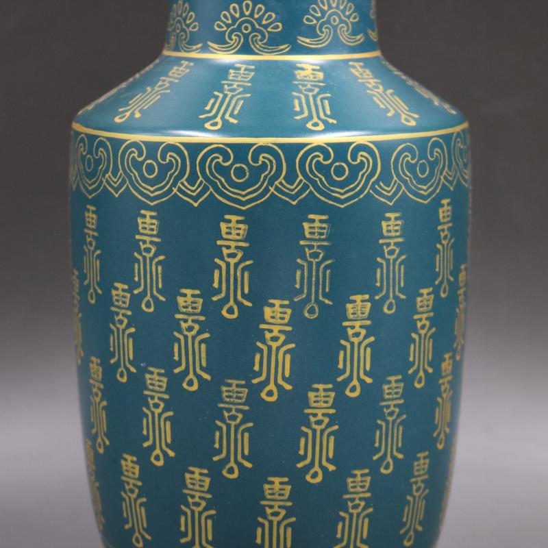 清雍正孔雀綠釉加彩百壽紋棒槌瓶手工仿古家居裝飾瓷器老貨擺件1入