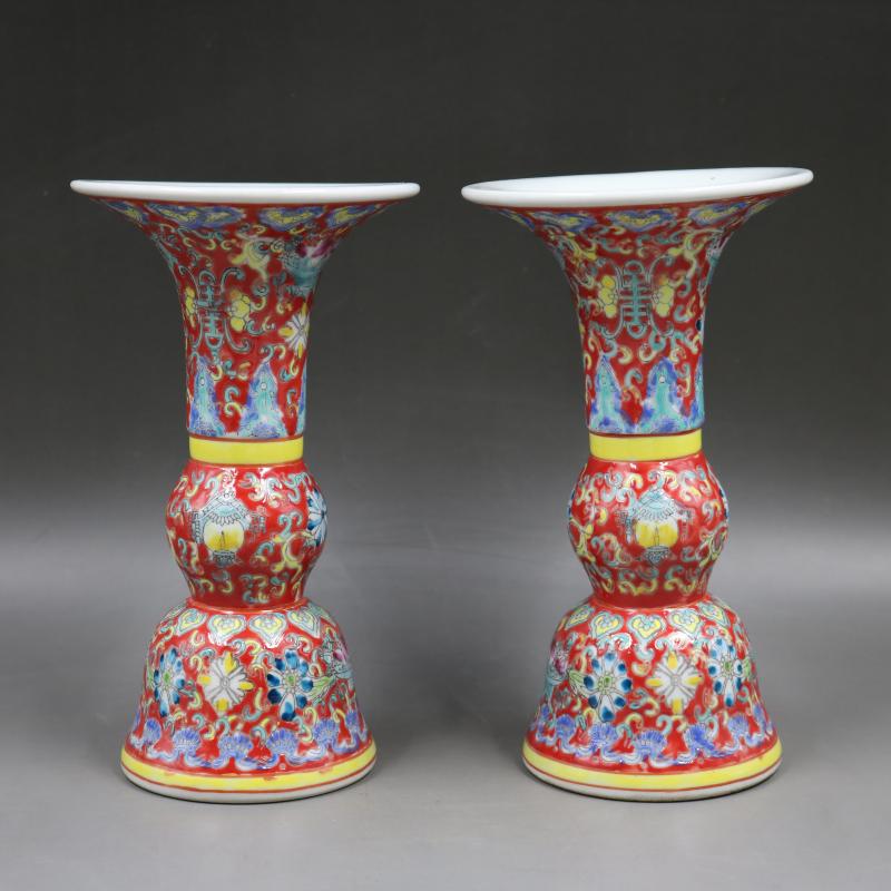 清乾隆粉彩福壽花觚瓶一對手工仿古家居裝飾瓷器擺件古董古玩收藏1入