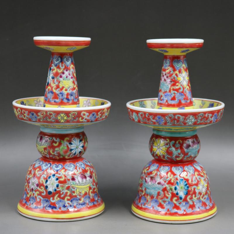大清乾隆粉彩福壽燭臺一對手工仿古家居裝飾瓷器擺件古董古玩收藏1入