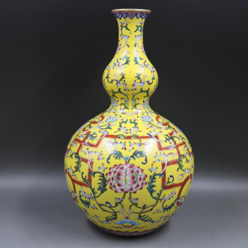 清乾隆掐絲粉彩描金花紋葫蘆瓶手工高仿古工藝品瓷器家居擺件收藏1入