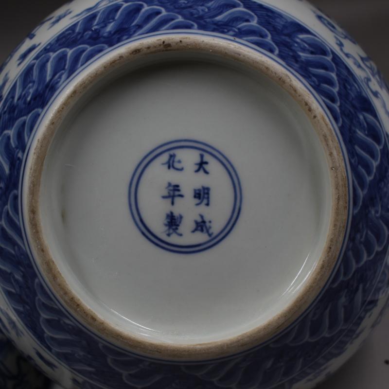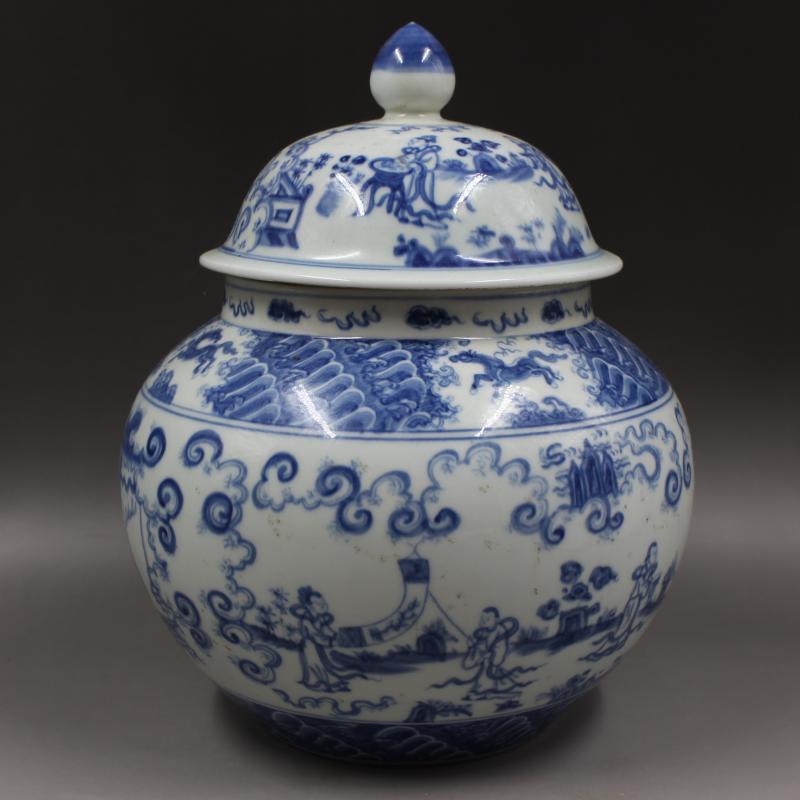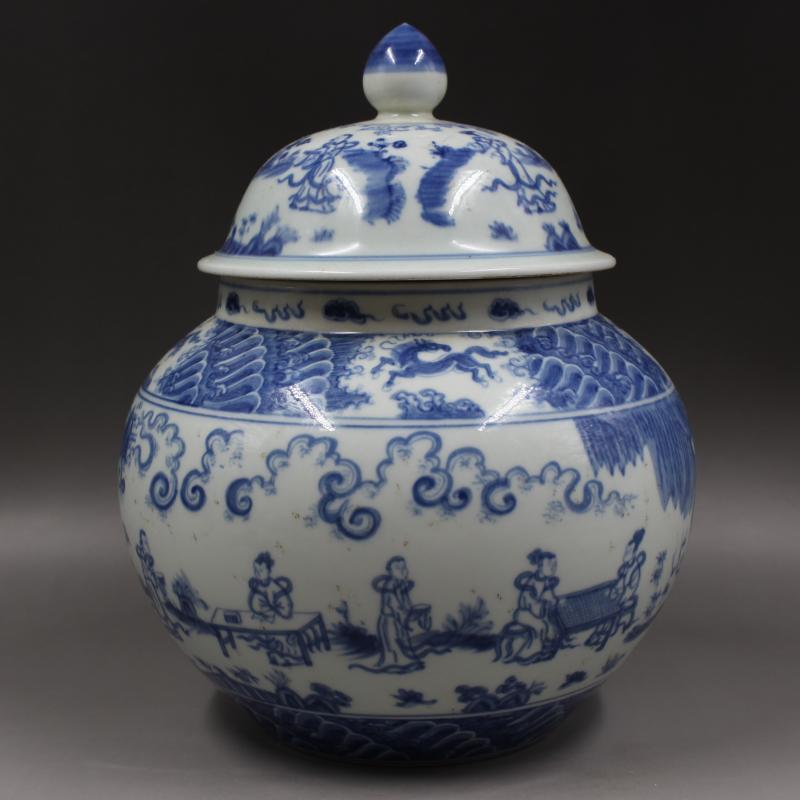 大明成化年制青花人物蓋罐手繪仿古瓷器家居老貨擺件古董古玩收藏1入