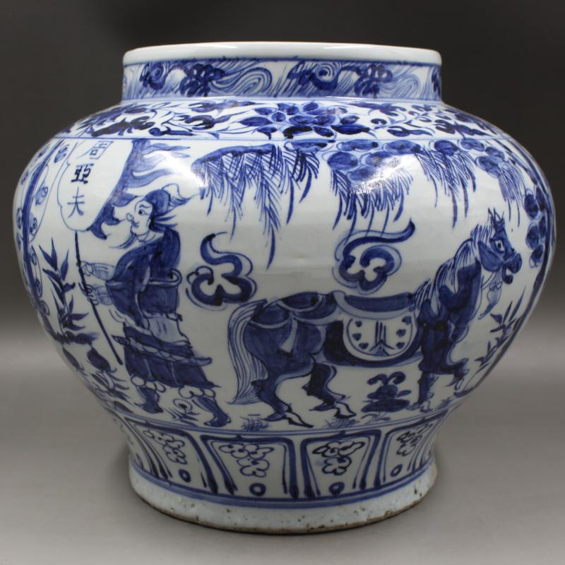 元青花人物周亞夫大罐手繪高仿古瓷器家居復古擺件古董古玩收藏1入