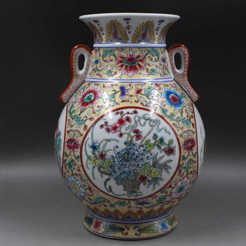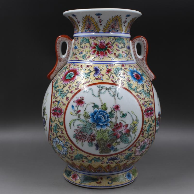 清乾隆琺琺瑯彩四季花紋福筒博古架家居擺件仿古瓷器古董古玩收藏1入