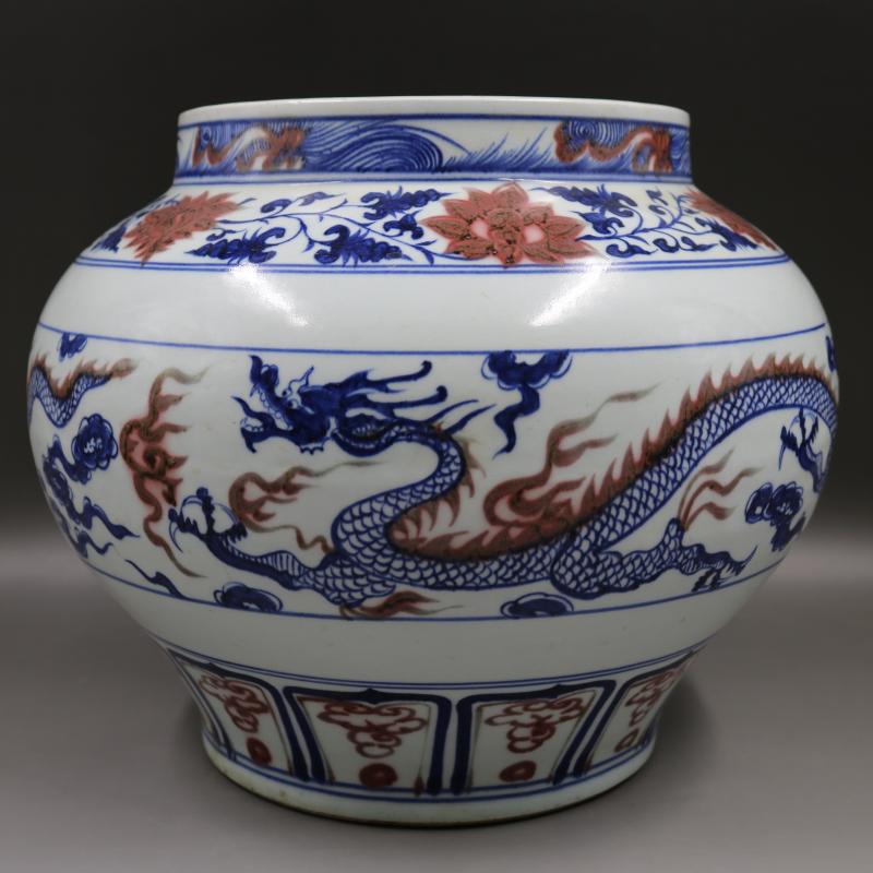 元青花釉里紅云龍紋大罐手繪仿古家居博古裝飾瓷器擺件古董古玩1入