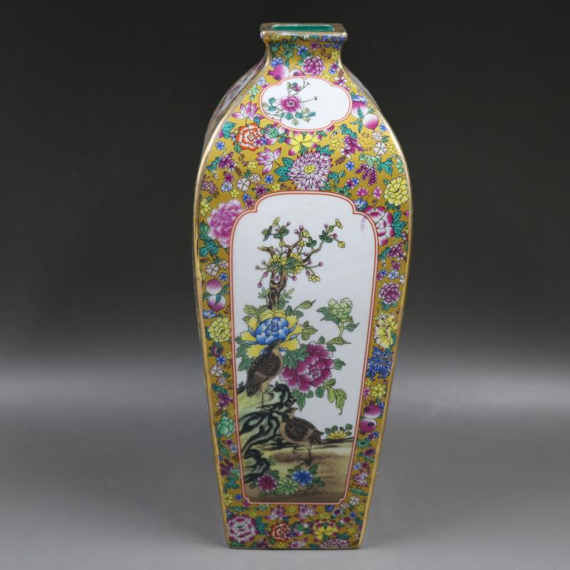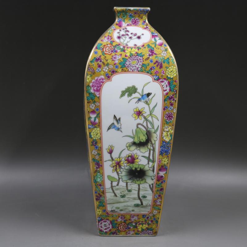 清乾隆金地粉彩四季花紋四方瓶復古家居裝飾瓷器擺件古董古玩收藏1入