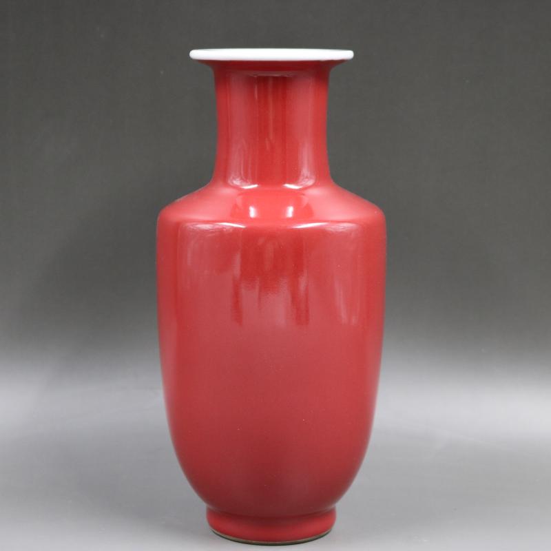 清乾隆胭脂紅釉棒槌瓶手工仿古家居裝飾瓷器擺件古董古玩老貨收藏1入