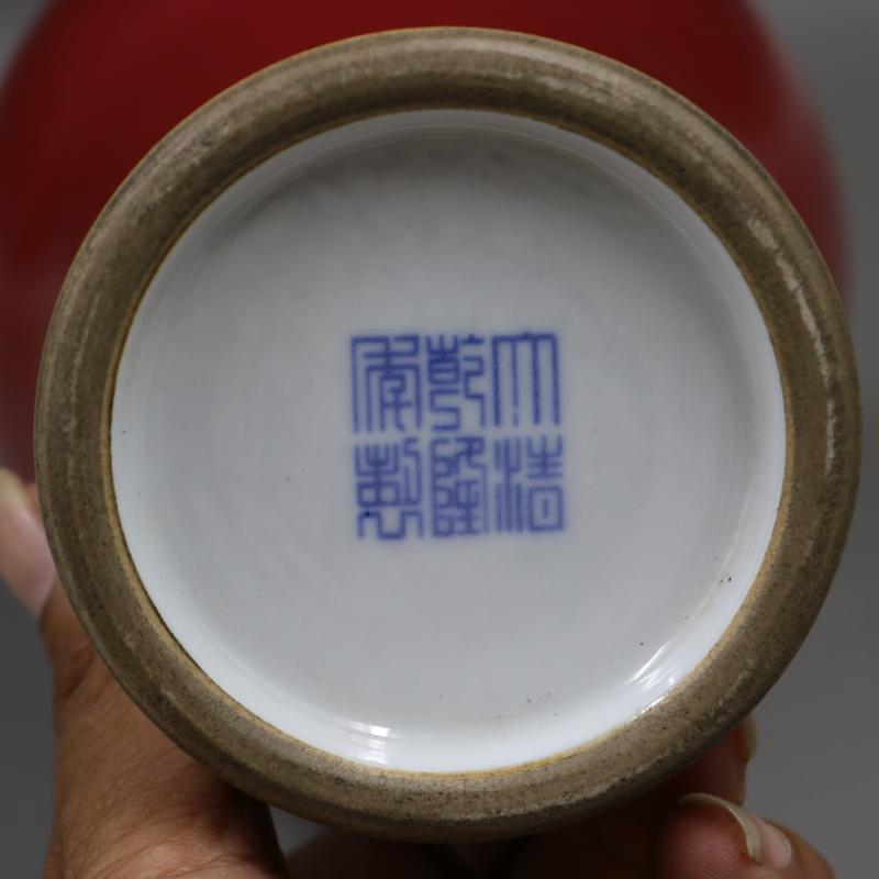 [2]清乾隆胭脂紅釉觀音瓶手工仿古家居裝飾瓷器擺件古董古玩老貨收藏1入