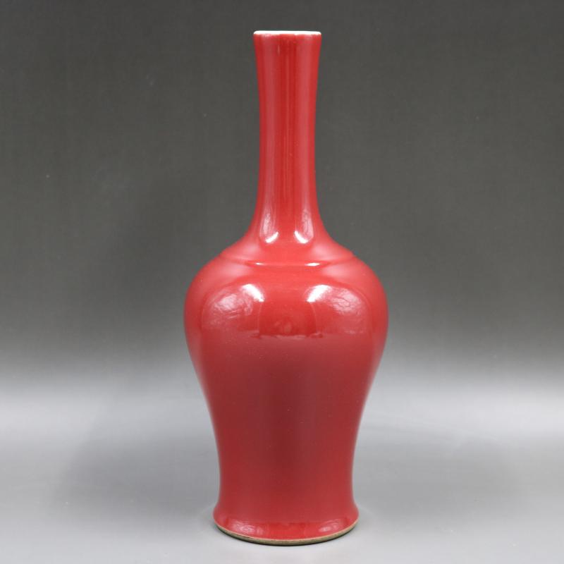 大清乾隆胭脂紅釉搖鈴尊瓶仿古家居裝飾瓷器擺件古董古玩老貨收藏1入