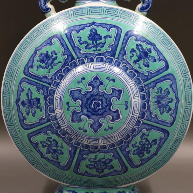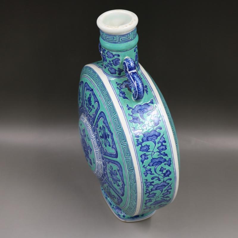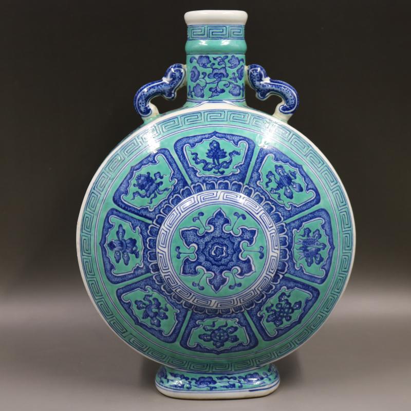 大清乾隆綠地青花八寶紋抱月瓶手繪仿古家居裝飾瓷器擺件古董古玩1入