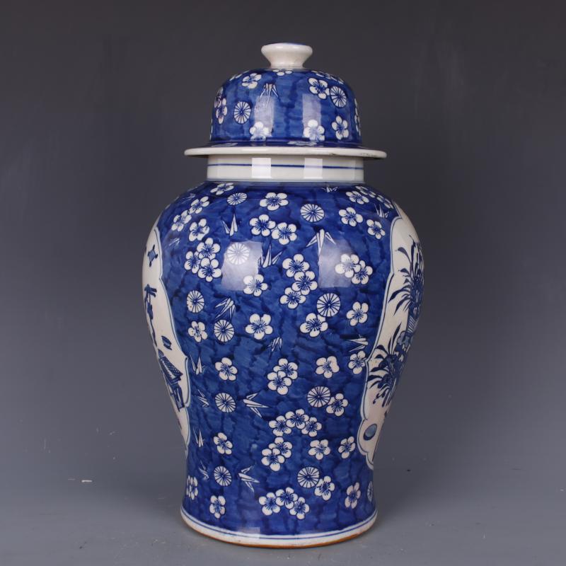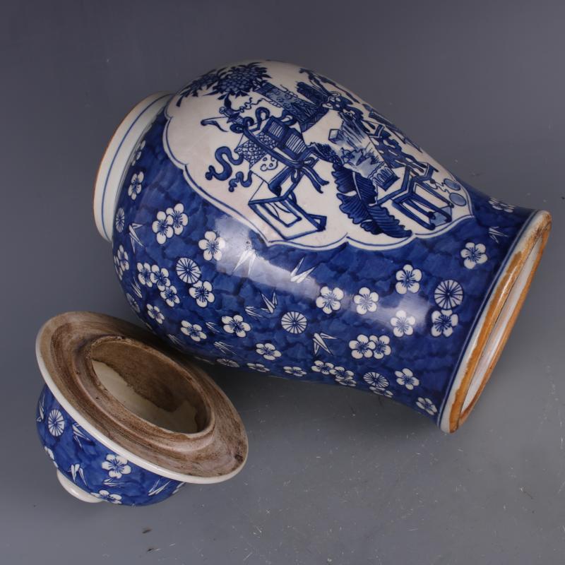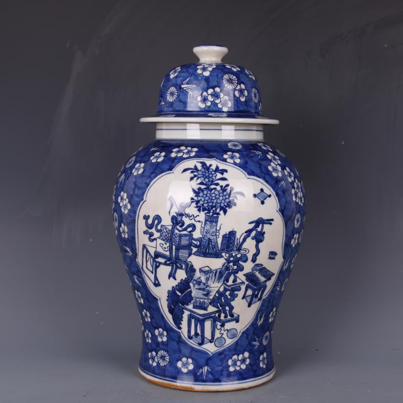 清康熙青花博古紋將軍罐家居老貨復古裝飾瓷器擺件古董古玩收藏1入