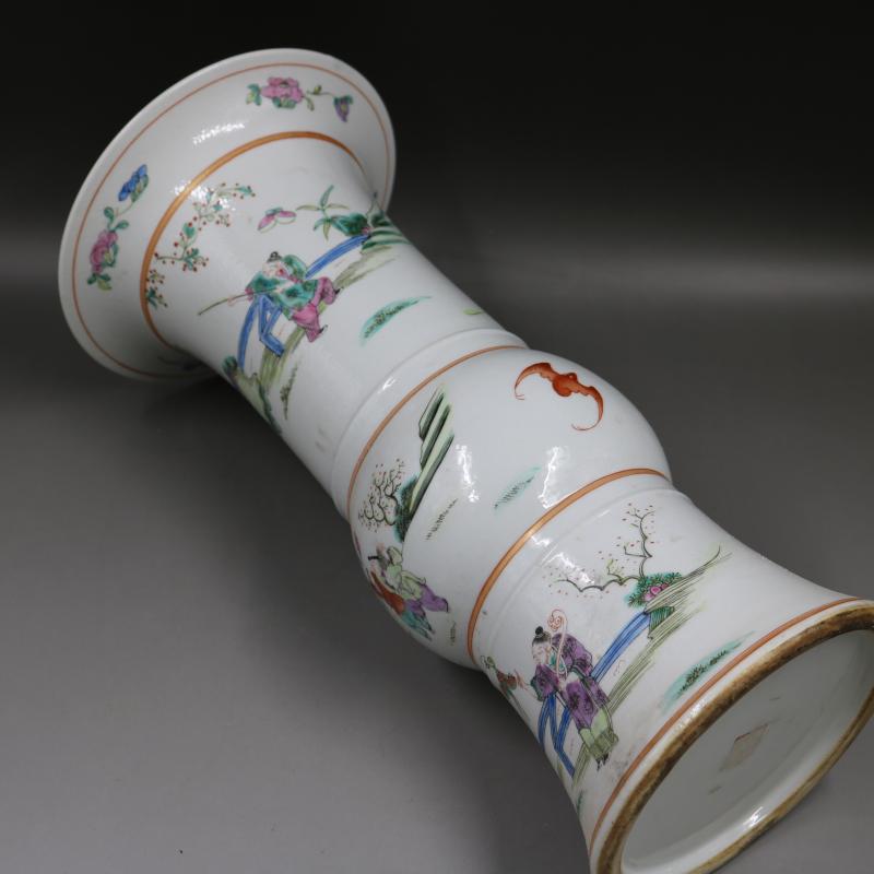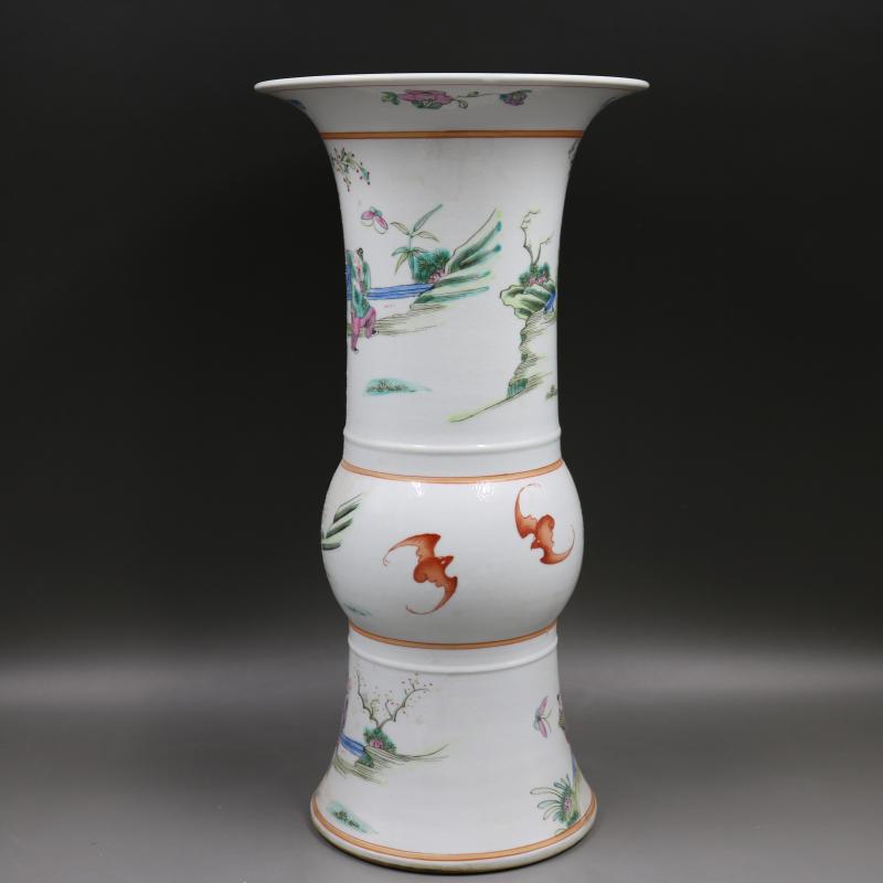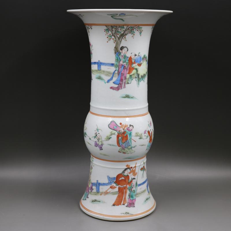 大清同治彩人物花觚瓶手工仿古家居復古瓷器裝飾擺件古董古玩收藏1入