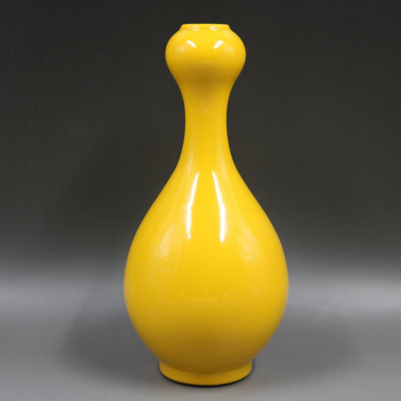 清雍正帝王黃釉蒜頭瓶手工仿古家居裝飾瓷器擺件古董古玩老貨收藏1入
