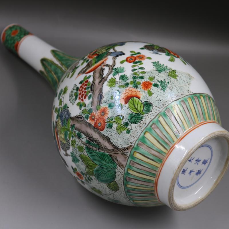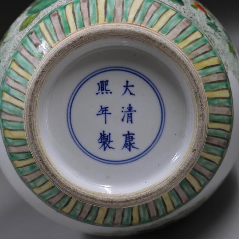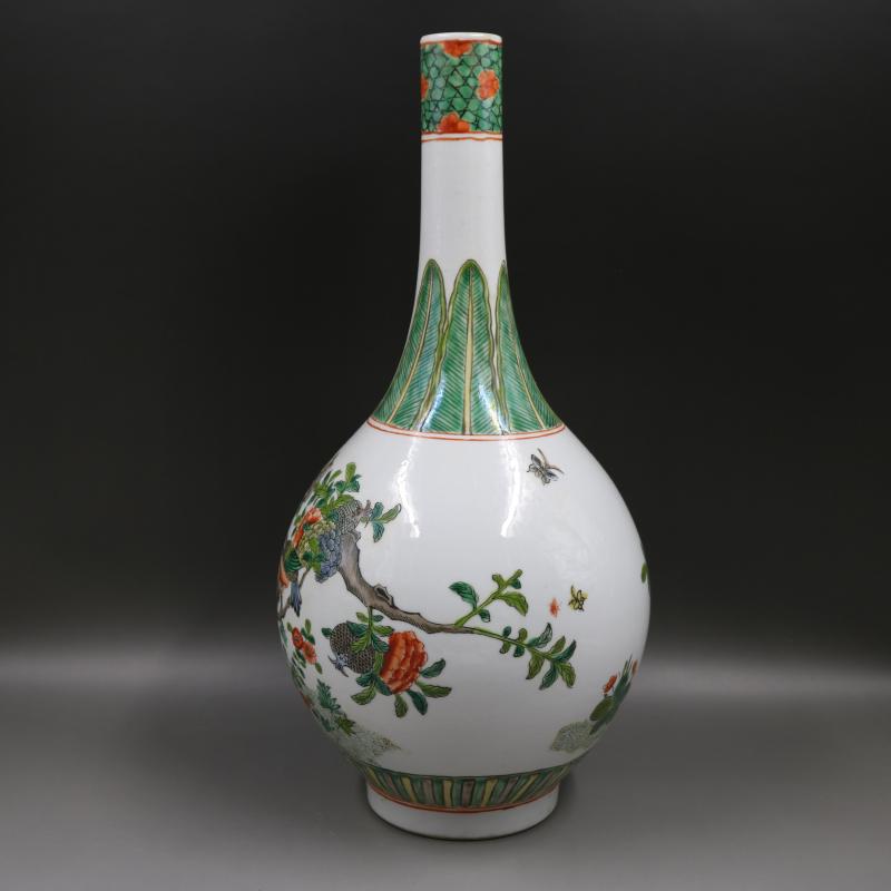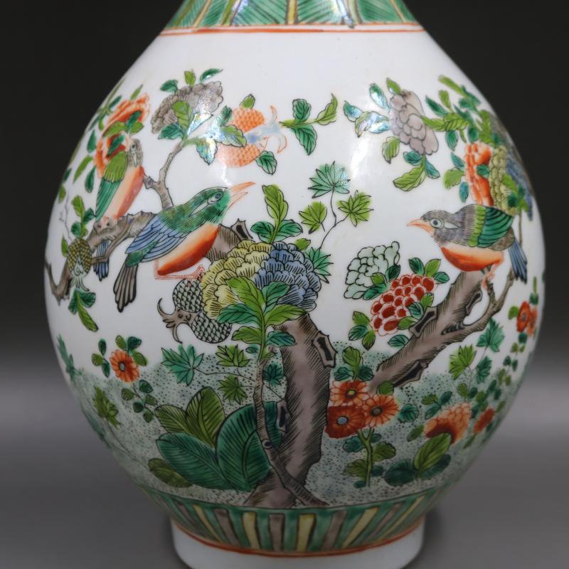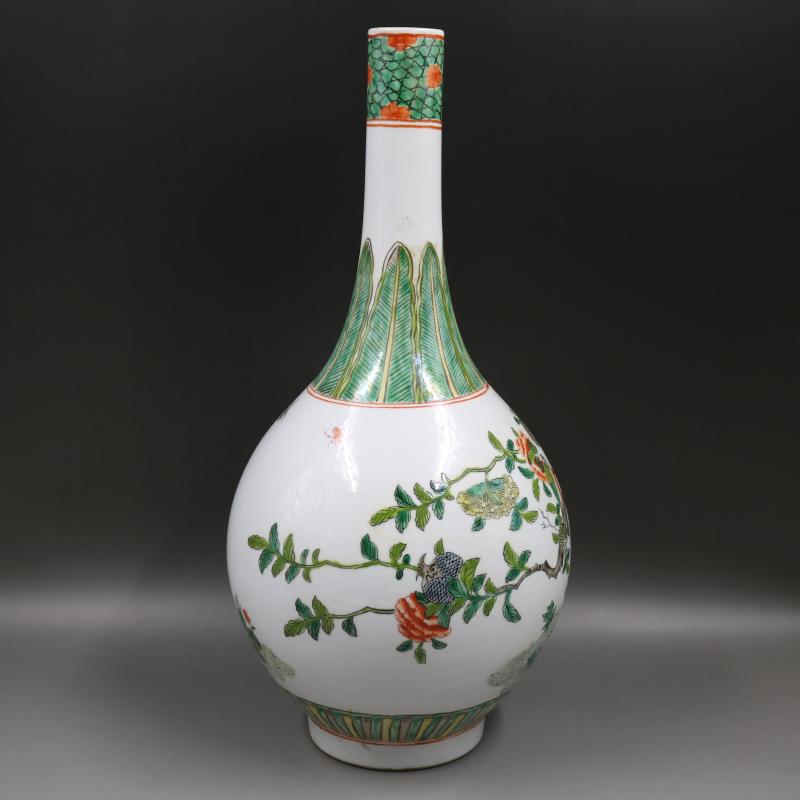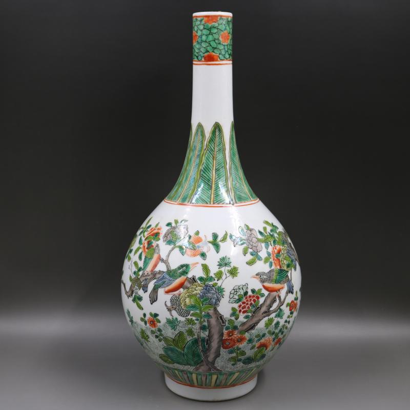 清康熙古彩富貴花鳥膽瓶手工仿古家居復古裝飾瓷器擺件古董古玩1入