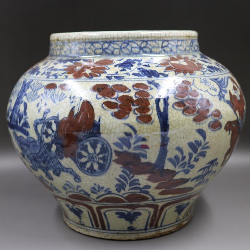 元青花釉里紅鬼谷子下山圖紋罐手繪仿古老貨家居瓷器擺件古玩收藏1入