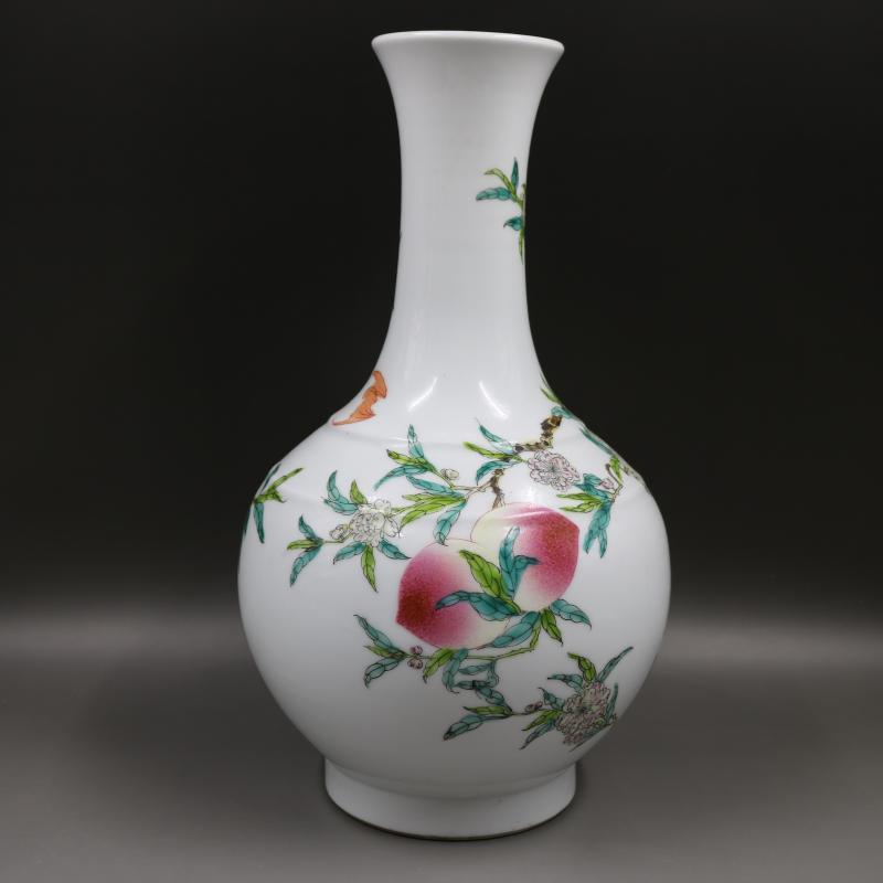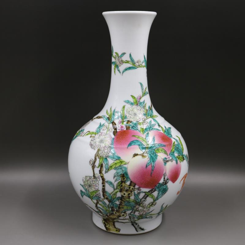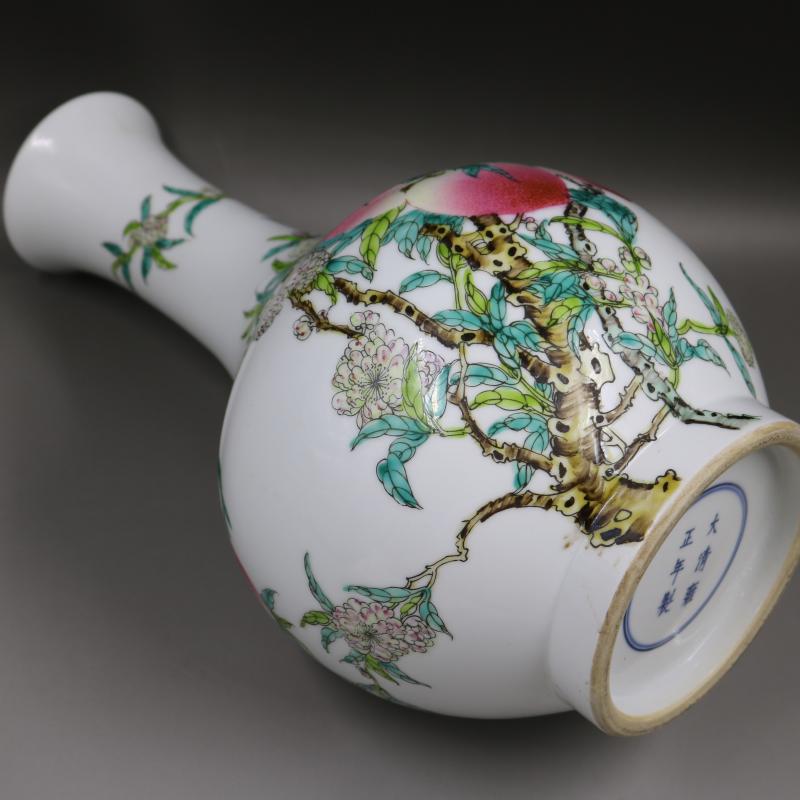 清雍正粉彩九桃紋賞瓶手繪仿古家居復古裝飾瓷器擺件古董古玩收藏1入