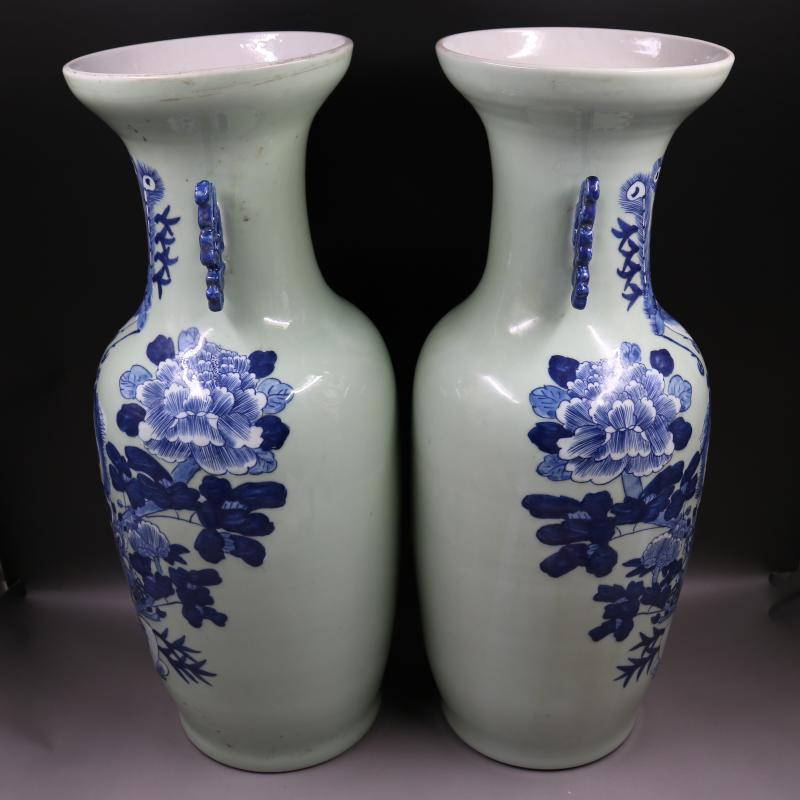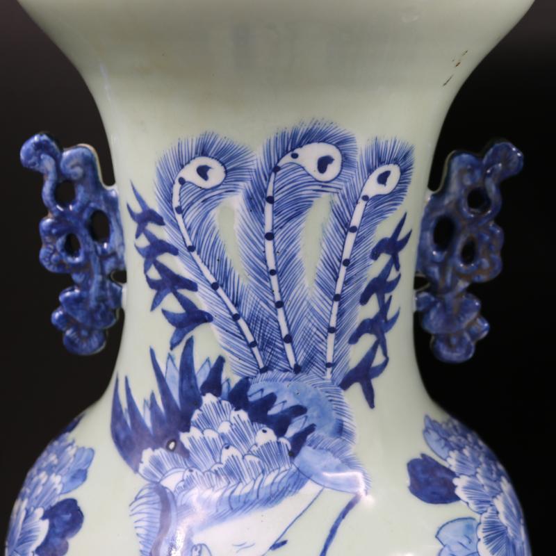 清康熙青花豆青釉鳳戲牡丹瓶仿古瓷器家居裝飾擺件古董古玩收藏1入
