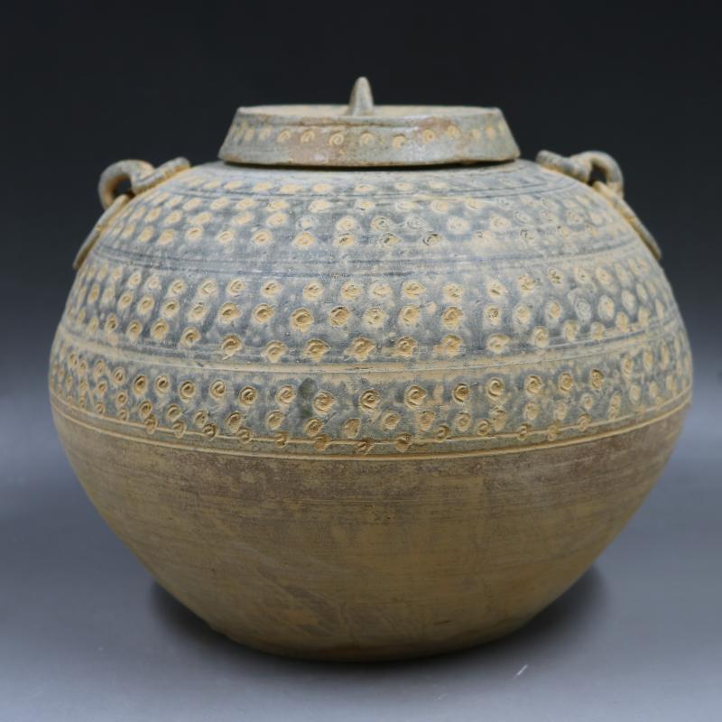 漢刻花紋蓋罐壇全手工仿古老貨家居復古裝飾瓷器擺件古董古玩收藏1入