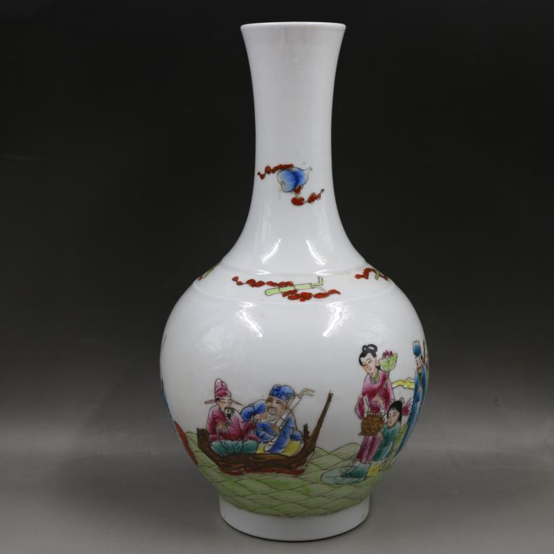大清雍正粉彩人物八仙賞瓶手繪仿古家居裝飾復古瓷器擺件古董古玩1入