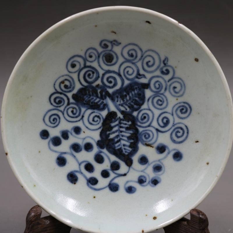元青花纏枝樹葉紋小碟手繪仿古老貨家居裝飾瓷器收藏古董古玩擺件1入