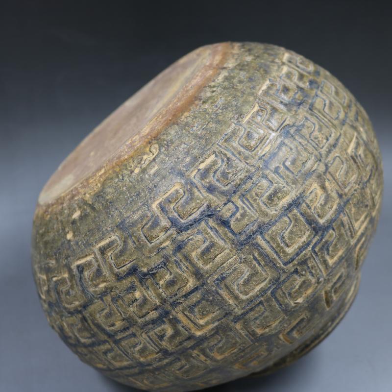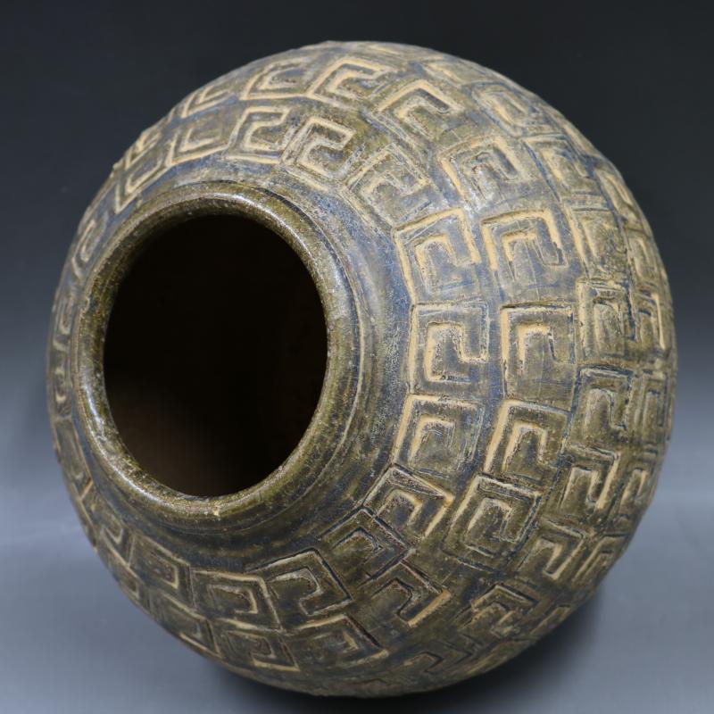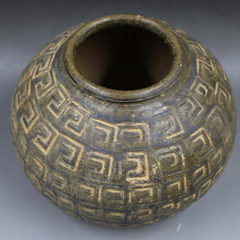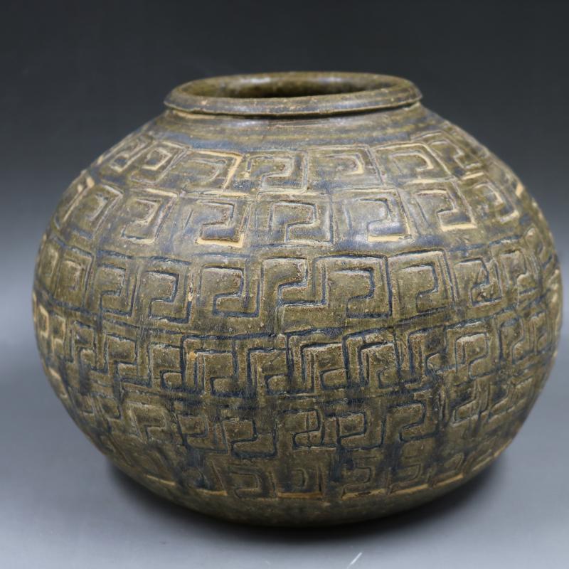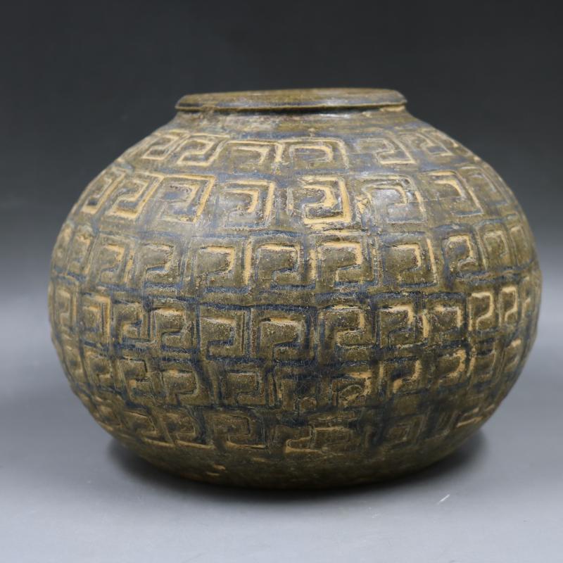 商朝刻花紋罐壇全手工仿古老貨家居復古裝飾瓷器擺件古董古玩收藏1入