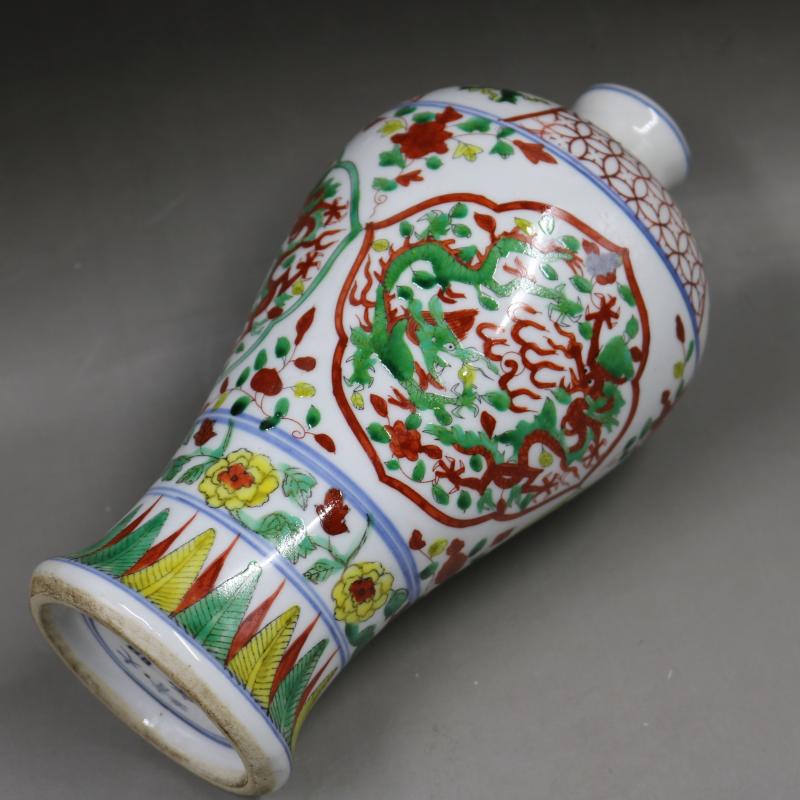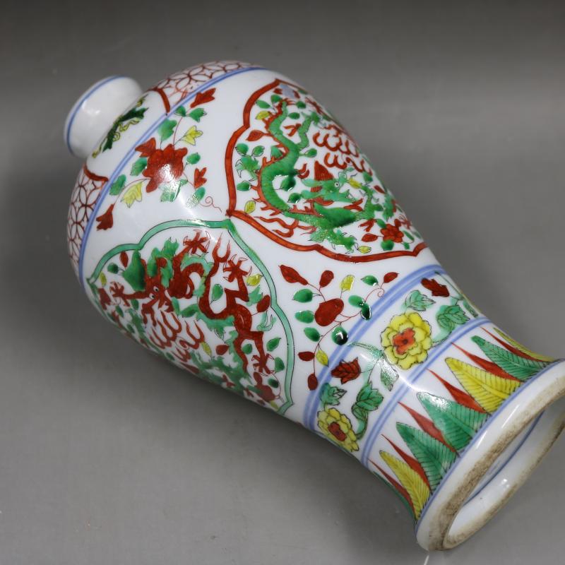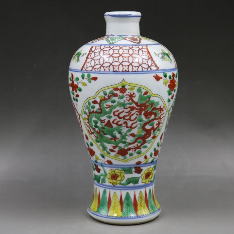 大明嘉靖年制青花五彩雙龍戲珠梅瓶仿古家居裝飾瓷器擺件古董古玩1入