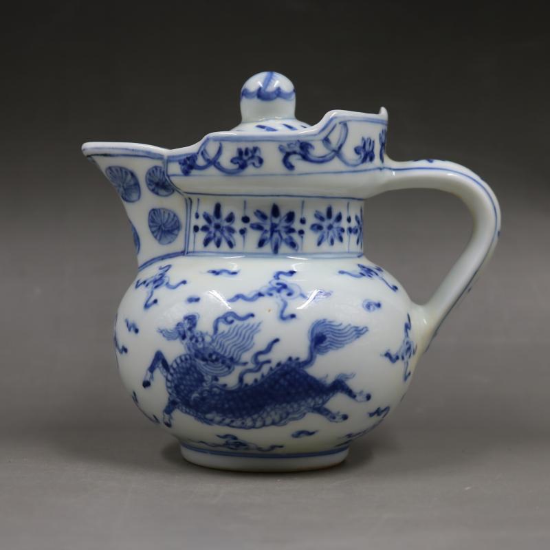 大明成化青花麒麟紋僧帽壺仿古家居復古裝飾瓷器擺件古董古玩收藏1入