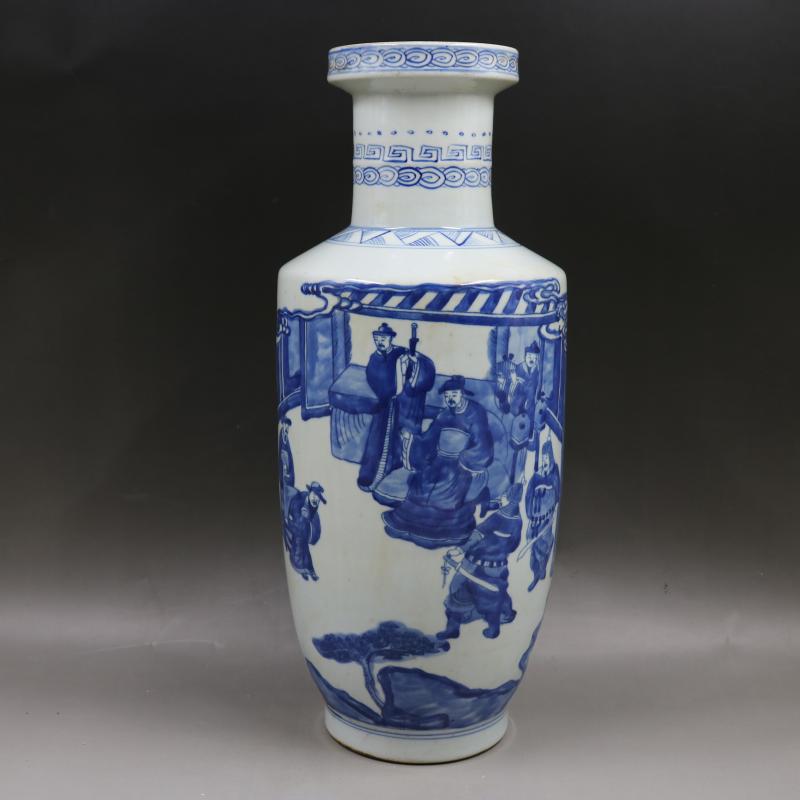 清康熙年制青花人物棒槌瓶仿古老貨瓷器家居擺件古董古玩瓷器收藏1入