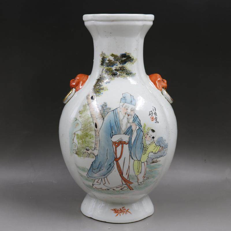 民國粉彩人物故事鑲器扁肚瓶手繪仿古老貨包老瓷器擺件古董古玩1入