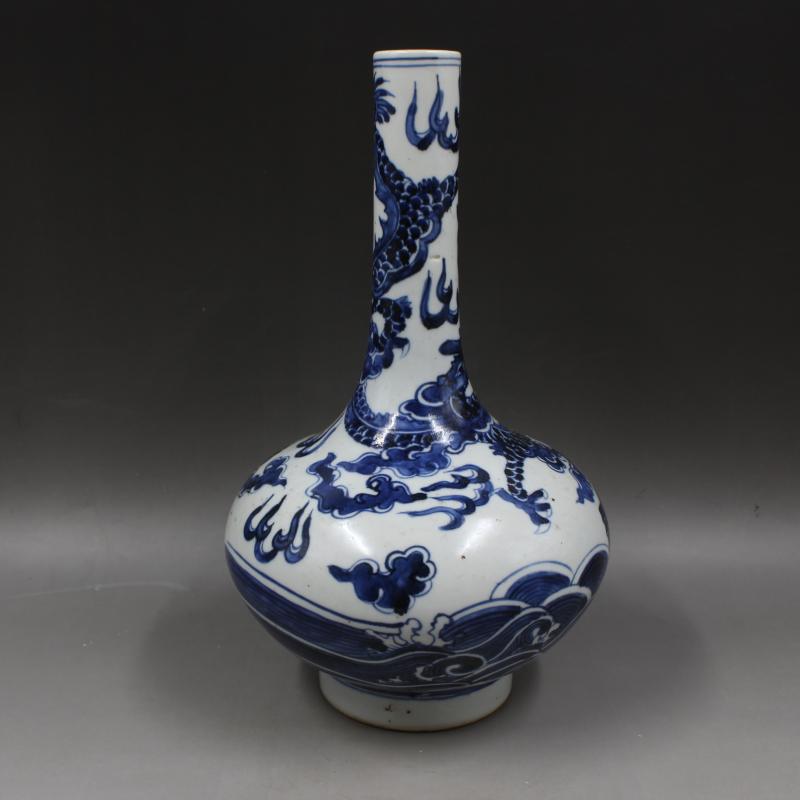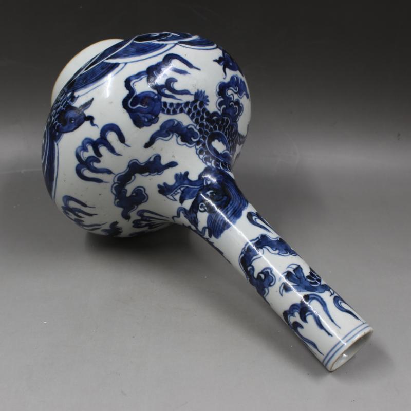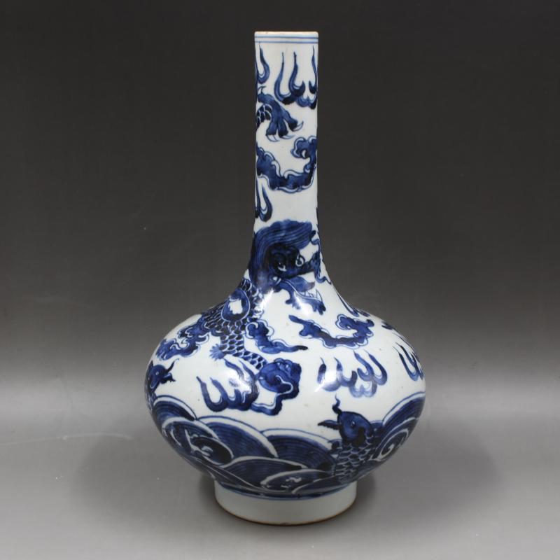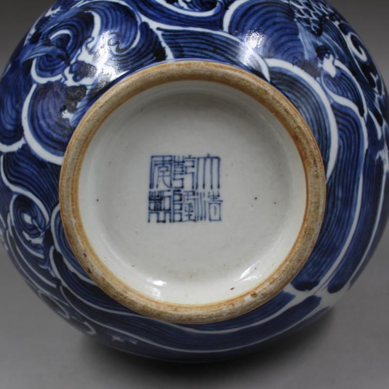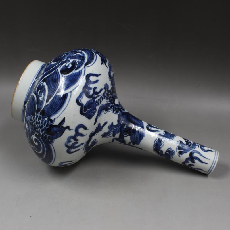 大清乾隆年制青花鯉魚龍紋扁肚瓶手繪仿古老貨瓷器擺件古董古玩1入
