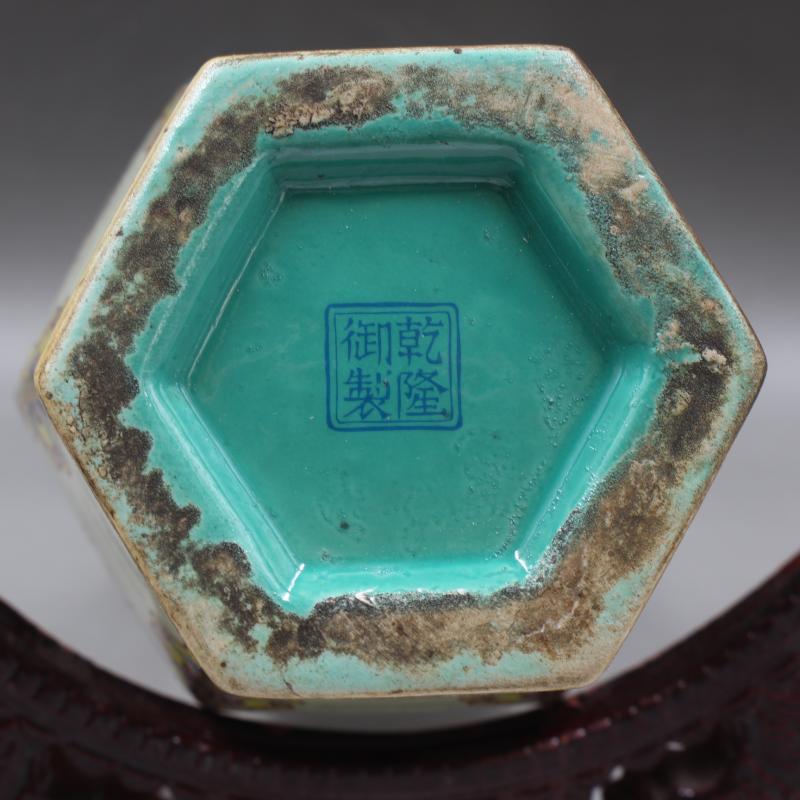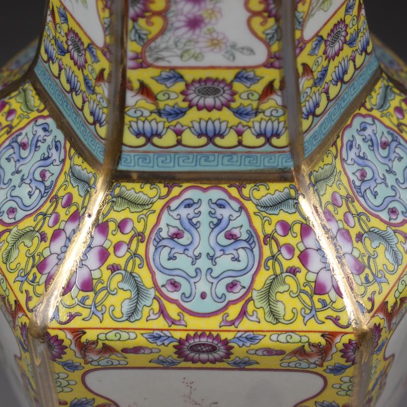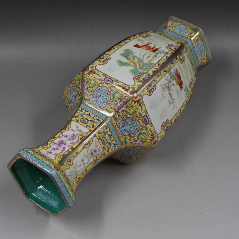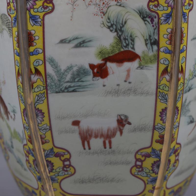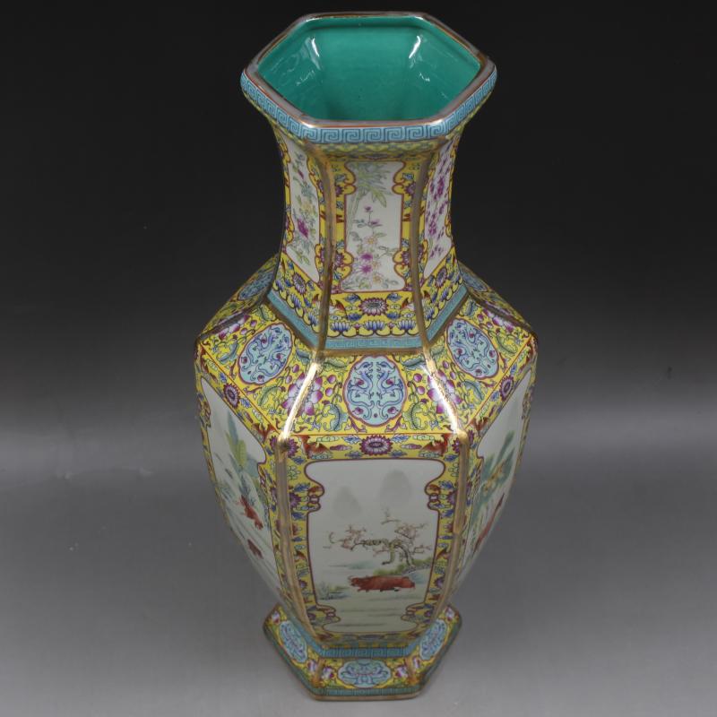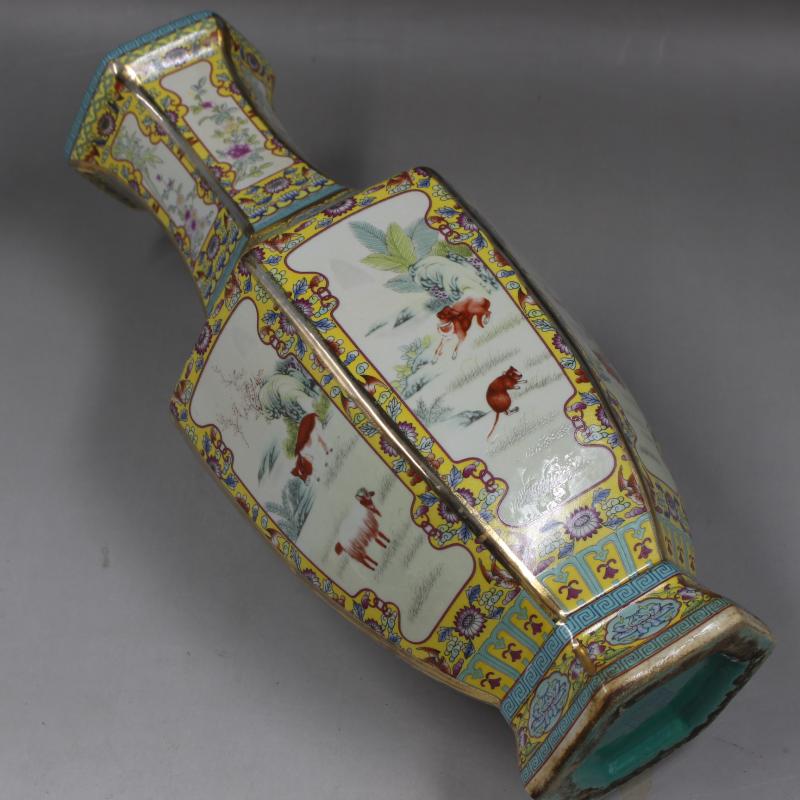 大清乾隆年制描金琺瑯彩十二生肖六方瓶家居觀賞仿古瓷器古玩擺件1入