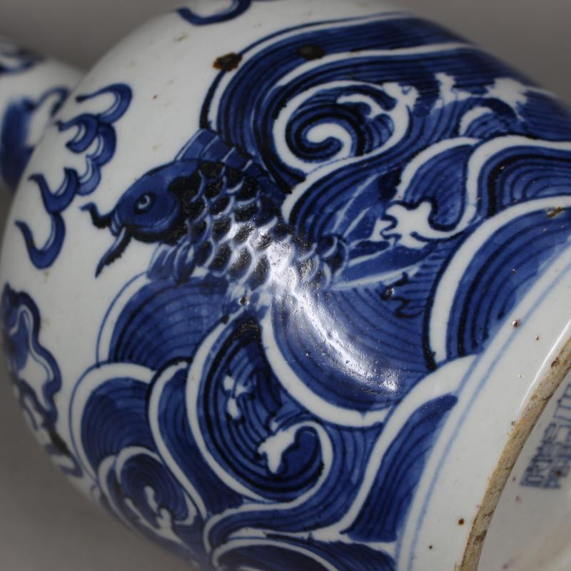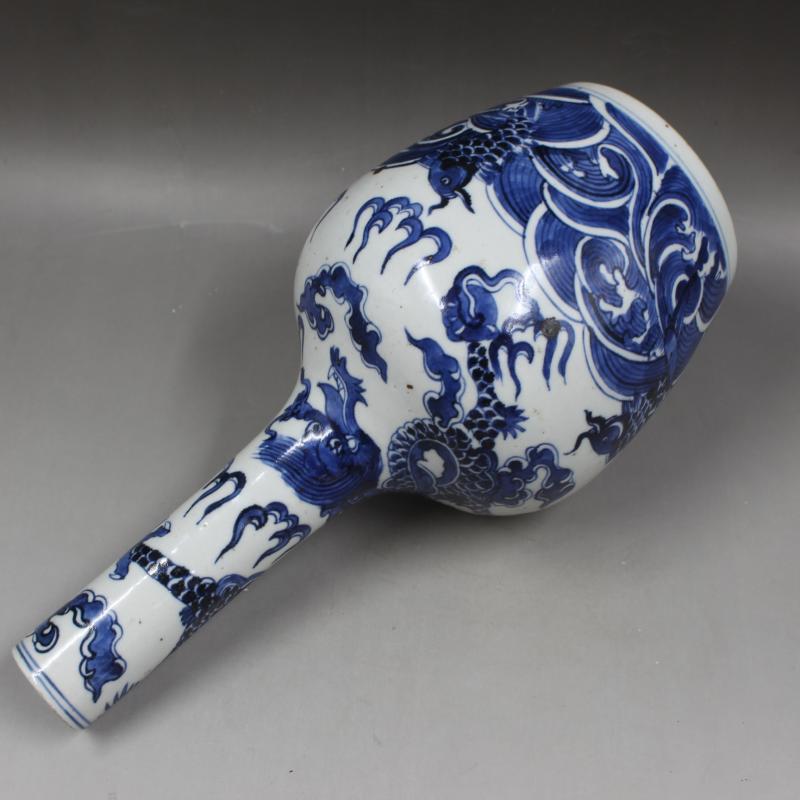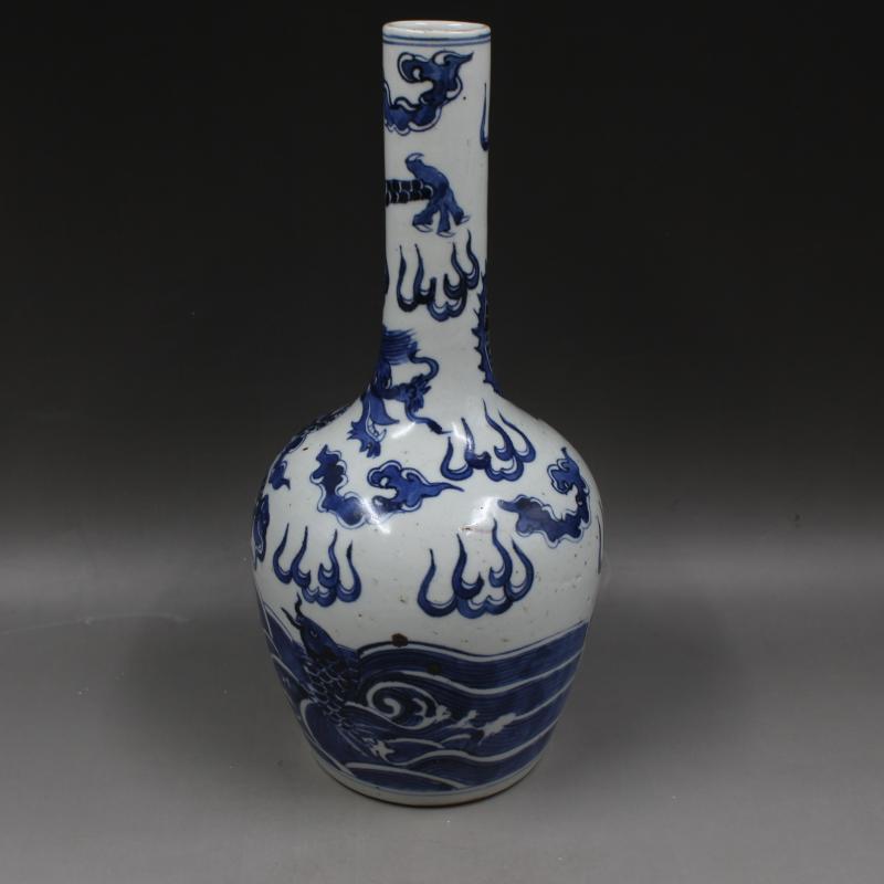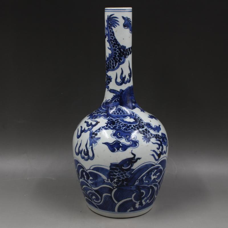 大清乾隆年制青花鯉魚龍紋膽瓶手繪仿古老貨瓷器家居擺件古董古玩1入