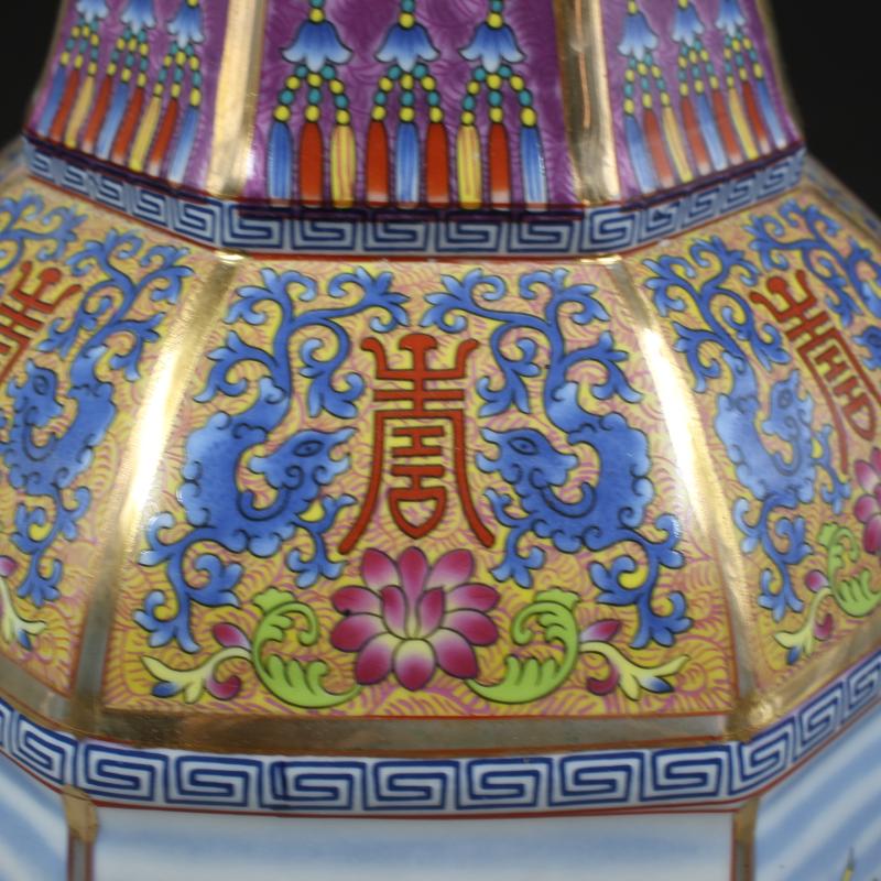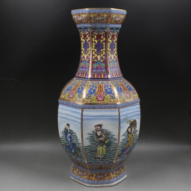 清乾隆年制描金琺瑯彩八仙人物賞瓶仿古工藝瓷器家居擺件古董古玩1入