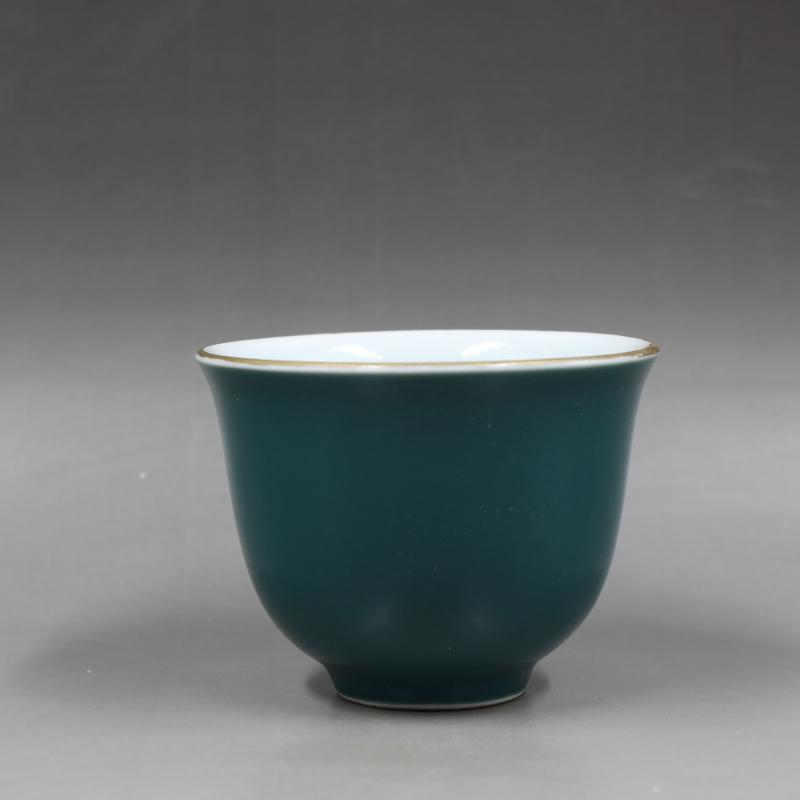 大清御善房款描金墨綠釉茶杯手工茶具瓷器家居擺件古董古玩老貨1入
