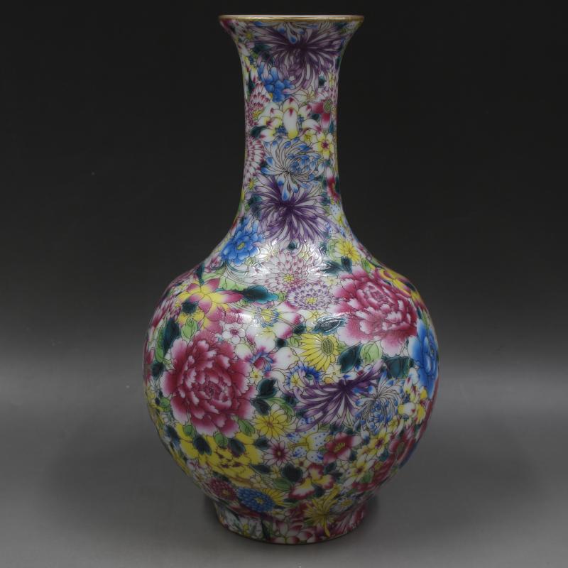 大清雍正年制描金粉彩萬花紋賞瓶仿古瓷器家居擺件古董古玩收藏1入