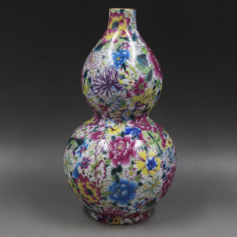 大清雍正年制描金粉彩萬花紋葫蘆瓶仿古瓷器家居擺件古董古玩收藏1入